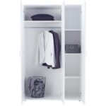 Niet pochýb o tom, že šatníková skriňa je súčasťou základného vybavenia každej domácnosti. So skriňou BASIC 3 si vyberiete kompaktný nábytok v nadčasovom dizajne. Skriňa je vyrobená z robustného drevodekoru, a s rozmermi cca 110,7 x 179 x 51,9 cm (Š x V x H). Hladké povrchy bielej farby zaisťujú svieži vzhľad, ktorý je dobre kombinovateľný v moderných aj klasických konceptoch bývania. Rovný dizajn dopĺňajú sivé plastové rúčky na dverách. Saká, sukne a obľúbené blúzky sa dajú úhľadne a bez pokrčenia uložiť na jednu vešiakovú tyč. Tri výškovo nastaviteľné police poslúžia na poskladané odevy. Skriňa BASIC je u nás dostupná vo viacerých prevedeniach. Môžete tiež ťažiť z výberu doplnkového nábytku a navrhnúť si spálňu, v ktorej sa budete cítiť dobre, s príkladným pomerom ceny a výkonu! Pozrite si aj naše produkty z kategórie: biele šatníkové skrine
