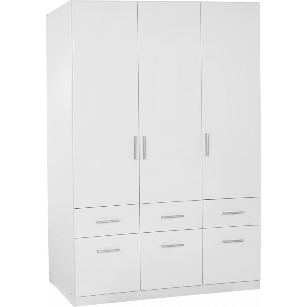 Kladiete veľký dôraz pri zariaďovaní spálne na funkčnosť a atraktívny vzhľad zároveň? Potom je skriňa CELLE pre vás ideálnou voľbou! Trojdverová skriňa ponúka šesť priestranných zásuviek umiestnených pod dverami. Vnútro skrine ukrýva jednu šatníkovú tyč na zavesenie oblečenia. Dva hĺbkové typy zásuviek ponúkajú možnosť ukladania a organizovania veľkého množstva malého oblečenia a bielizne. Boky skrine sú zhotovené v matnej a čelo skrine vo vysokom lesku bielej farby. Praktická, priestranná, krásna, elegantná a lacná – či už do detskej / juniorskej alebo do vašej spálne, táto skriňa vás určite presvedčí o jej kvalitách! Doplňte si túto skriňu aj nasledovným: 0380008517 nadstavec / doplnková vrchná skrinka Upozornenie: Horná doska skrine je bez povrchovej úpravy, nie je olaminovaná.