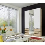 Skriňa v modernej kombinácii dekorov biela a prírodný dub disponuje tromi otočnými dverami. Stredné dvere sú vyhotovené so zrkadlovým povrchom. Dvere disponujú kovovými lištovými úchytmi vo farbe chrómu. Za dverami sa nachádzajú 2 police a …