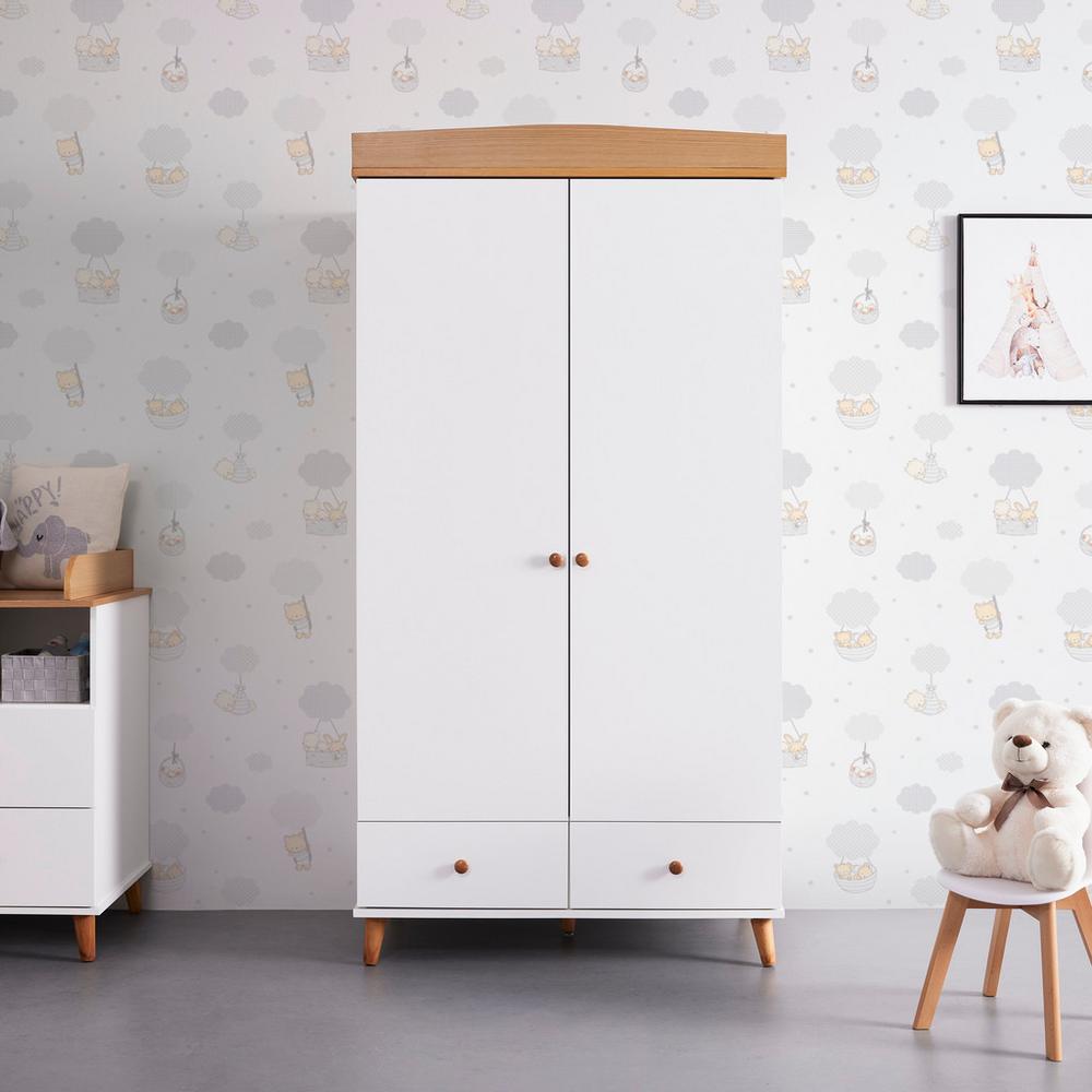 Tento výrobok je dostupný IBA ONLINE. Táto dvojdverová šatníková skriňa v bielej a prírodnej drevenej farbe prináša príjemnú atmosféru do izby vášho dieťaťa svojím jasným a priateľským vzhľadom v štýle Scandi. Cca 100 x 90 x 58 cm (Š x V x …