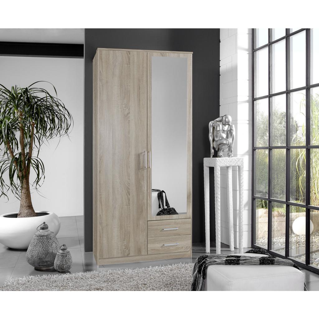 Tento výrobok je k dispozícii iba ONLINE. Potrebujete viac miesta na svoje oblečenie? So štýlovými skriňami OSAKA získajú aj vášniví fanúšikovia módy dostatok priestoru pre svoj rozsiahly šatník. Táto dvojdverová skriňa je síce na pohľad malá, vnútro ukrýva dostatočný priestor na uloženie vecí. Táto šatníková skriňa je vyhotovená s dubovým dekorom, ktorý dopĺňajú rukoväte v hliníkovej farbe. Inteligentné usporiadanie interiéru je zamerané na čo najväčší prehľad. Za dvomi otočnými dverami sa nachádza jedna šatníková tyč a tri police, ktoré si môžete flexibilne prispôsobiť a výškovo nastaviť tak, ako potrebujete. Ďalším prvkom sú dve zásuvky, ktoré poskytujú veľa miesta navyše. Jedny dvere sú naviac vybavené zrkadlom, takže si môžete ihneď na sebe skontrolovať zvolenú kombináciu odevov. Praktická, estetická a priestrann&aa