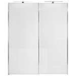 Táto moderná šatníková skriňa s korpusom vyhotovenom v bielom dekore a so sklenenými dverami alpskej bielej farby prináša do spálne funkčnosť a elegantný vzhľad. Kovové úchyty chrómovej farby zaokrúhľujú celkový obraz vo veľkom štýle. Šatník s rozmermi cca 200 x 222 x 68 cm (Š/V/H) je vybavený 2 posuvnými dverami, za ktorými sa nachádza 1 šatníková tyč a 6 výškovo nastaviteľných vkladacích políc. Táto veľmi kvalitná nemecká skriňa sa hodí do každého moderného príbytku. Osvetlenie, rozdeľovník vnútorného členenia v tvare T a zásuvkový modul nie sú súčasťou dodávky, môžete ich zakúpiť v našom internetovom obchode. Využite bohatý výber doplnkov a variantov (výber dekorov a rozmerov) pre túto skriňu! Poznámka: Certifikovaný nemecký výrobok. Upozornenie: Dostupné len na objednávku v našich predajniach alebo cez e-shop.