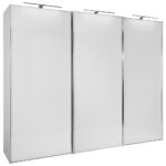 Táto moderná šatníková skriňa s korpusom vyhotovenom v bielom dekore a so sklenenými dverami alpskej bielej farby prináša do spálne funkčnosť a elegantný vzhľad. Kovové úchyty vo farbe chrómu zaokrúhľujú celkový obraz vo veľkom štýle. Šatník s rozmermi cca 298x 222 x 68 cm (Š/V/H) je vybavený 3 posuvnými dverami, za ktorými sa nachádza 1 šatníková tyč a 6 výškovo nastaviteľných vkladacích políc. Táto veľmi kvalitná skriňa sa hodí do každého moderného domova. Osvetlenie, rozdeľovník vnútorného členenia v tvare T a zásuvkový modul nie sú súčasťou dodávky, môžete ich zakúpiť v našom internetovom obchode. Využite bohatý výber doplnkov a variantov (výber dekorov a rozmerov) pre túto skriňu! Poznámka: Certifikovaný nemecký výrobok. Upozornenie: Dostupné len na objednávku v našich predajniach alebo cez e-shop.