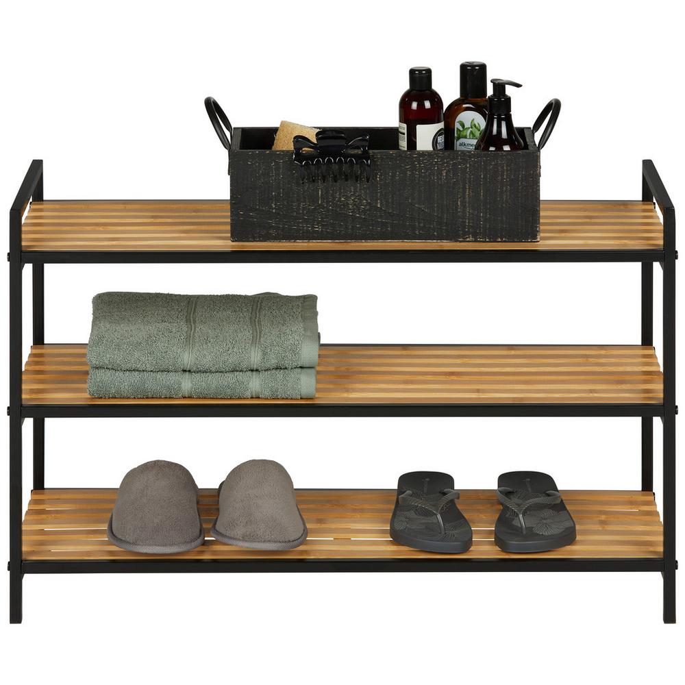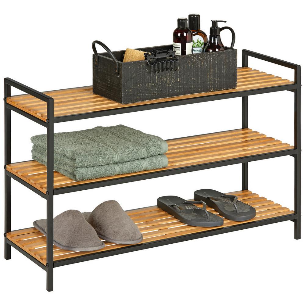 Schuhregal in Naturfarben/Schwarz.