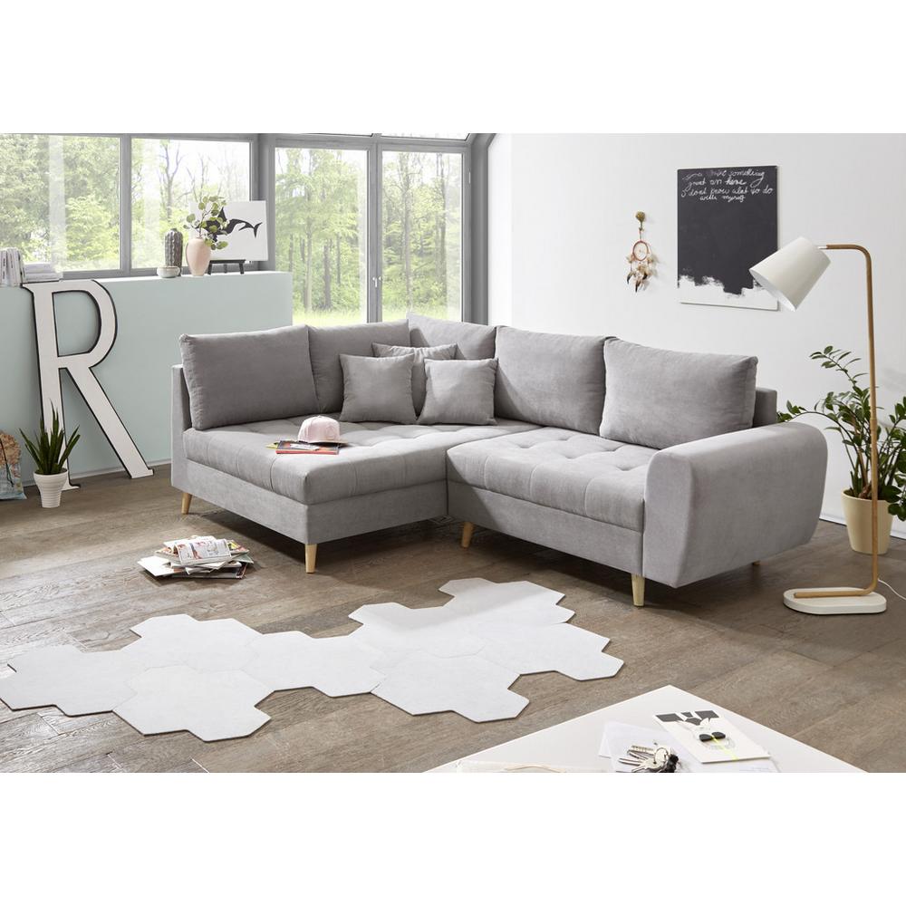Tento tovar je k dispozícií IBA ONLINE!Táto sedacia súprava vo svetlej šedej látke v elegantnom vzhľade s kvalitným spracovaním urobí z tohto miesta vaše nové obľúbené miesto na relax. Zadná strana sedačky je v originálnom poťahu, súčasťou sú chrbtové aj dekoračné vankúše. Sedák s Nosag pružinami a so stredne mäkkou penovou výplňou zaistí vynikajúci komfort sedenia. Otoman je pri tomto modely vľavo. Pasujúci taburet je možné dokúpiť extra.