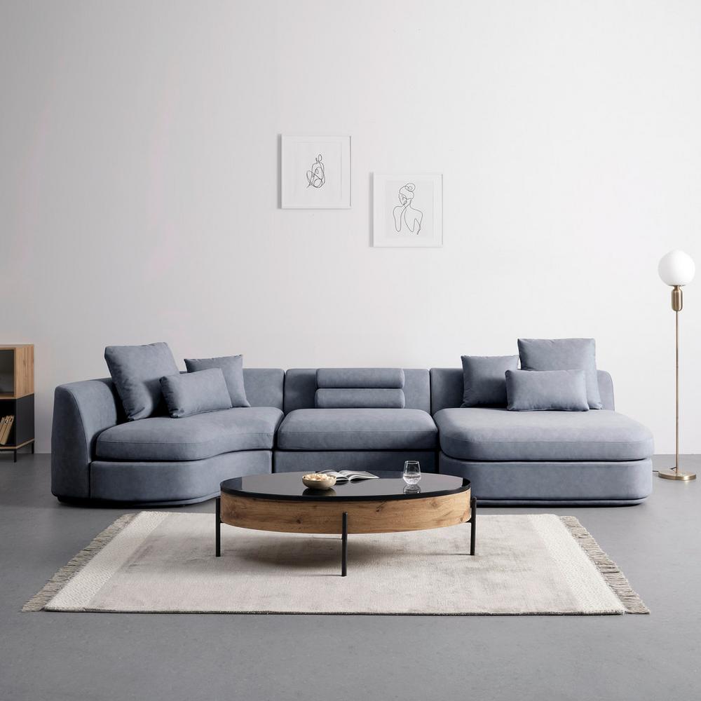 Tento výrobok je k dispozícii IBA ONLINE. Ak hľadáte veľkoryso dimenzovanú oázu pohody pre váš domov, potom je sedacia súprava ANNA presne tou správnou voľbou! Zaoblený dizajn v tvare U dodáva tejto sedačke, s rozmermi asi 358 x 190 x 70 cm (Š x V x H), jedinečný vzhľad a zaručene z nej urobí stredobod celej obývacej izby. Tkaný poťah zo 100 % polyesteru tmavej, modrosivej farby vyžaruje klasickú eleganciu. Penové výplne spolu s ozdobnými a ľadvinovými vankúšmi zaisťuje optimálny komfort sedenia. Otoman na každej strane ponúka sedenie alebo relaxovanie s vyloženými nohami. Maximálna nosnosť celej sedačky je 360 kg. Upozornenie: Tento tovar sa nenachádza v našich predajniach. Objednať si ho môžete iba cez e-shop Möbelix.