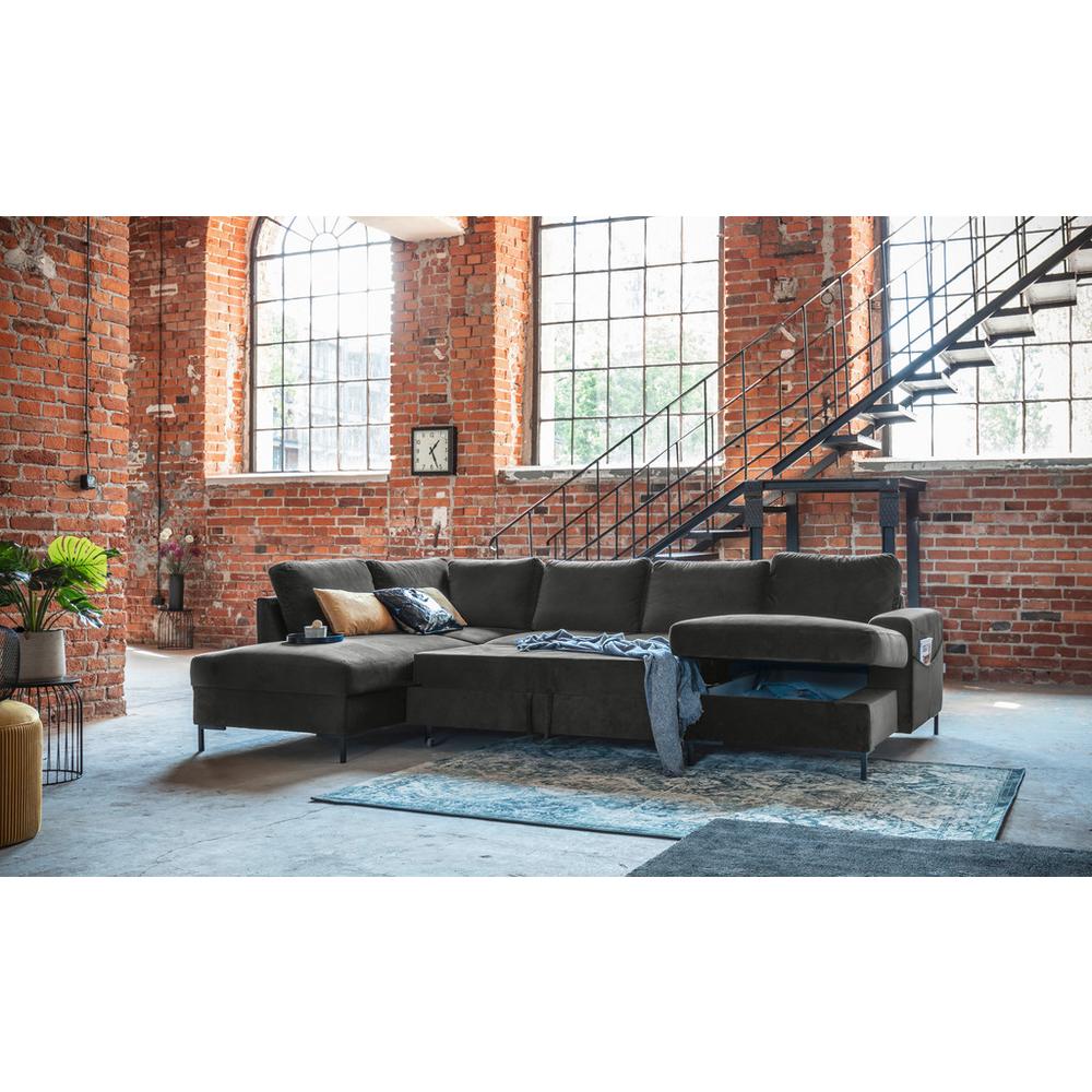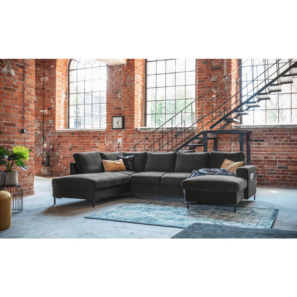 Tento tovar je dostupný IBA ONLINE. Priestranná sedacia súprava vnesie do každého príbytku veľkorysú plochu na sedenie a leňošenie. Ponúka tri strany na sedenie rôznych dĺžok: približne 198 x 304 x 149 cm (ľavá strana / stred / pravá strana), ktoré tvoria vizuálne príťažlivý tvar U, a poskytujú priestor na sedenie pre asi osem ľudí. Takže na nej môžete s rodinou alebo priateľmi pozerať filmy, piť nápoje a tráviť spolu čas bez tlačenia. Na tejto sedacej súprave budete sedieť vo výške asi 45 cm, hĺbka sedadla je asi 58 cm. Celkovo je sedacia súprava vysoká približne 85 cm, široká cca 304 cm a jej maximálna nosnosť je až 730 kg, pričom každé jedno miesto na sedenie možno zaťažiť do 90 kg. Velúrová tkanina v tmavosivej farbe je pomerne robustná, bola testovaná s 50 000 cyklami trenia a má dobrú stálosť farby. Nemusíte sa báť, že poťah rýchlo vybledne! Zadná strana je tiež čalúnená s originálnym poťahom, takže ju môžete umiestniť aj do priestoru, kdekoľvek v miestnosti. Vizuálne atraktívny nábytok je tiež vybavený operadlom, lakťovou opierkou a šiestimi vankúšmi na opretie v rovnakej farbe, v akej je sedačka. Vďaka tomu nielen vyzerá útulne, ale stane sa tiež atraktívnym pútačom a stredobodom pozornosti v celej
