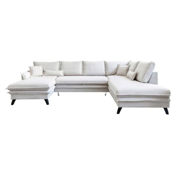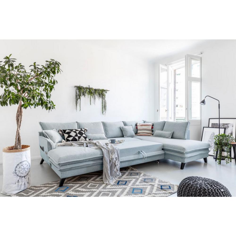 Tento tovar je k dispozícii IBA ONLINE. Jednoduchá, funkčná a dobre čalúnená: rohová pohovka s funkciou spánku. S rohovou rozkladacou pohovkou nájdete to pravé miesto pre relax. Pohovka, ktorá je určená až pre 8 osôb, má nosnosť okolo 150 kg na sedadlo. Sedacia súprava sa dá behom chvíľky premeniť na plnohodnotný priestor na spanie s plochou na ležanie približne 130 x 270 cm (š xd). Využite výhody úložného priestoru a uschovajte posteľné prádlo a deky. Najdôležitejšie informácie na prvý pohľad: Dizajn a materiál Povrchový materiál: tkanina (100% polyester) Typ čalúnenia: vlnité pružiny, jadro z polyéterovej peny Doplnky: ozdobné vankúše Špeciálne vlastnosti: zadná časť čalúnená originál poťahom Rozmery a údaje Rozmery cca v cm: 150x 300 x 200 Počet miest na sedenie: 8 Výška sedadla približne v cm: 44 Hĺbka sedadla v cm: 54 Výška nohy cca v cm: 12 Funkcia spánku Ležiaca plocha približne v cm (Š x D): 130 x 270 Ležiaci priestor vhodný pre ľudí: 2 Typ funkcie postele: pozdĺžny spánok Úložný box: áno