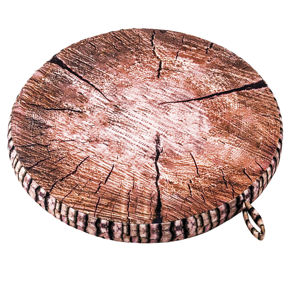 Posedenie na drevenom kláte ešte nikdy nebolo také pohodlné! Originálne okrúhly sedák s motívom dreva, ktoré vyzerá ako práve odrezané. Oživí každú kuchyňu či terasu a spríjemní posedenie na tvrdých stoličkách alebo na zemi doma aj vonku.Hebký „zamatový“ poťah má zapínanie na zips – možno ho jednoducho zvliecť a vyprať. Výplň sedáka je z molitanu. Iste oceníte aj praktické pútko na zavesenie. Potlač je obojstranná.