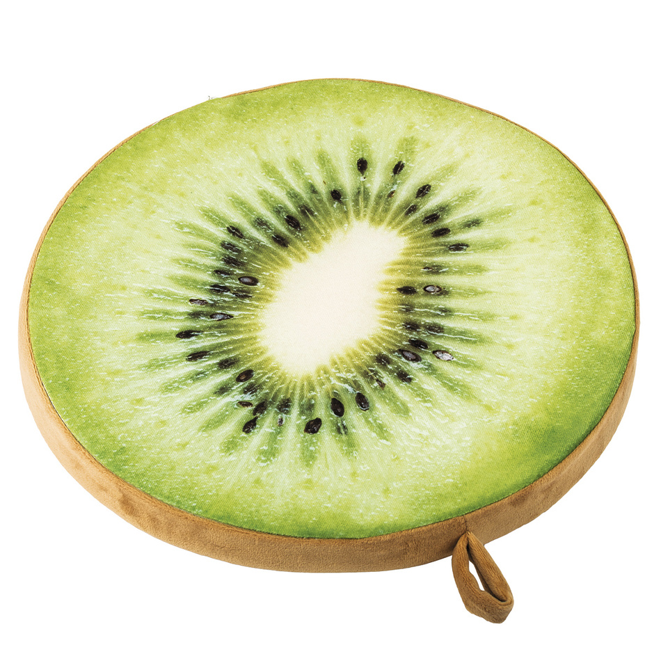 Doprajte si pohodlné šťavnaté posedenie! Originálne okrúhly sedák s motívom Kiwi, ktorý vyzerá ako živý. Oživí každú kuchyňu či terasu a spríjemní posedenie na tvrdých stoličkách alebo na zemi doma aj vonku.Hebký „zamatový“ poťah má zapínanie na zips – možno ho jednoducho zvliecť a vyprať. Výplň sedáka je z molitanu. Iste oceníte aj praktické pútko na zavesenie. Potlač je obojstranná.
