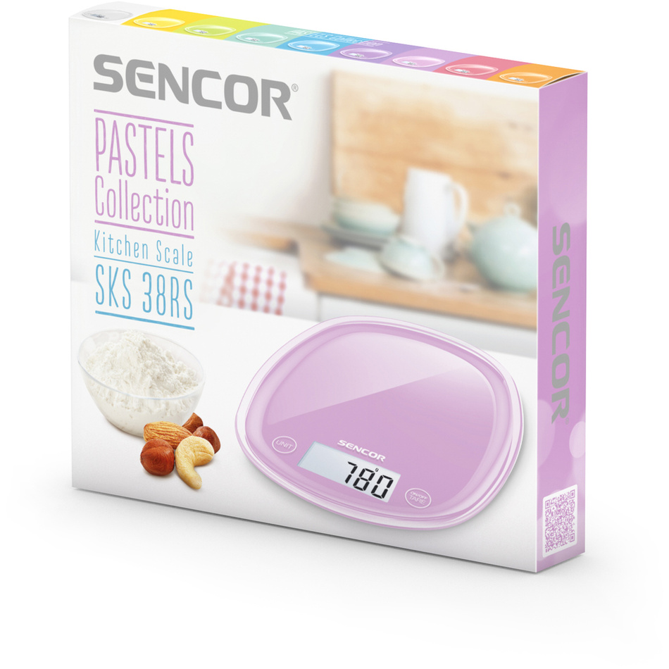 Vstúpte do hravého sveta vírivých farieb, ktoré rozžiaria vašu kuchyňu. Predstavujeme novú kolekciu pestrofarebných kuchynských spotrebičov značky Sencor Pastels, ktorá snúbi svieži dizajn a skvelé funkcie. Nechajte svoju domácnosť zažiariť a doprajte si skvelú náladu pri akejkoľvek práci v kuchyni.Kuchynská váha Sencor SKS zaistí vždy správne dávkovanie všetkých potrebných surovín i perfektný prehľad o zásobách domácnosti. Ponúka pohodlné dotykové ovládanie s dlhou životnosťou a veľký LCD displej s podsvietením, vďaka ktorému bude obsluha váhy hračkou. Povrch tohto malého kuchynského pomocníka je z jedného dielu plastu, čo uľahčuje údržbu.Presnosť váženia na 1 gram garantuje štvorica integrovaných senzorov. Váha si poradí s akýmkoľvek nákladom až do piatich kilogramov. Nechýba praktická funkcia nulovania hmotnosti nádoby (TARA). Vďaka nej jednoduchým stlačením tlačidla odčítate hmotnosť nádoby a získate čisté výsledky.Pri práci so spotrebičom možno pracovať s niekoľkými jednotkami – g / ml / lb / fl oz. Medzi ďalšie vlastnosti dizajnovej kuchynské váhy Sencor patrí funkcia postupného dovažovania, automatické vypnutie pri nečinnosti alebo indikácia slabej batérie a preťaženia.Dodávané príslušenstvo: 3x 1,5 mikrotužková batéria (AAA).