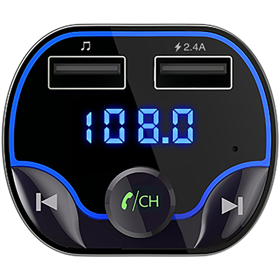 Má 2 USB konektory (1 pre hudbu vo formáte MP3, 1 hlavný pre nabíjanie – DC 5 V/2,4 A max.) a vstup pre TF/Micro SD karty (podpora až 32 GB). Adaptér tiež disponuje vstavaným mikrofónom, takže s ním môžete pohodlne zdvíhať hovory, alebo si ich pomocou podpory môžete preniesť do autorádia. Je možné na ňom ovládať hlasitosť, má tiež funkciu pauza, späť, vpred. Prístroj má pamäť poslednej frekvencie, čísla skladby a hlasitosti. Jednoduché prepínanie medzi zdrojmi audiosignálu BT/TF/USB. Digitálne ladenie a zobrazenie kmitočtu. Merač napätia v napájacej sústave automobilu. Rozsah vysielacích FM frekvencií: 87,5 – 108 MHz. Počet FM frekvencií: 206. Napájanie: DC 12 / 24 V (autozapaľovač).