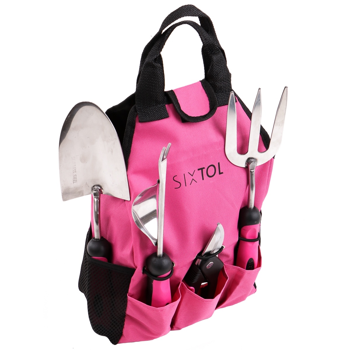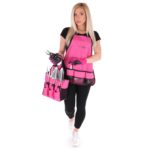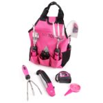 Táto praktická sada poteší každú milovníčku záhrady. Obsahuje brašnu s vreckami, s ktorou sa náradie ľahko prenáša a vďaka praktickej zástere budete mať najpoužívanejšie náradie vždy po ruke. Súčasťou sú aj záhradné rukavice a štyri plastové pazúriky, ktoré prilepíte na rukavici svojho výberu (ľavú či pravú) a s ich pomocou ľahko odstránite burinu z hliny alebo vyhrabete jamku v záhone. Pazúriky ochránia vaše nechty pred poranením o kamienky a iné ostré predmety. Pre nalepenie odporúčame obojstrannú lepiacu pásku alebo kvapku lepidla. Okrem klasického náradia nájdete v sade aj robustné záhradné nožnice s poistkou a pílku na konáre. Neoddeliteľnou súčasťou je tiež zvinovací meter, pevný záhradný drôt a vysádzač semienok.