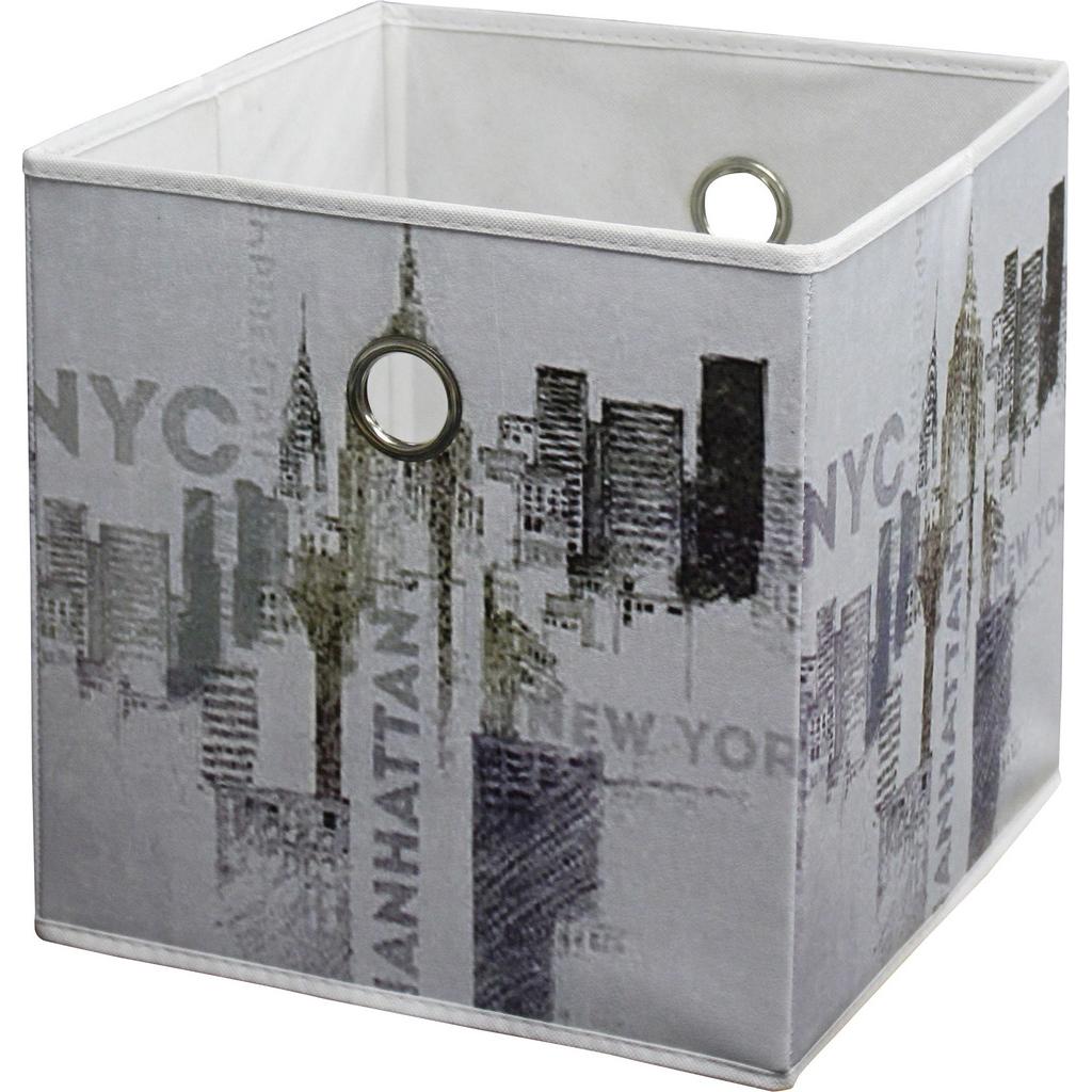 Skladací box s dizajnom New York je perfektným doplnkom do každej modernej domácnosti. Box z koženky vytvára štýlovú atmosféru u vás doma. Box s rozmermi 32 x 32 x 32 cm (š/v/h) je vhodný do regálov na uskladnenie rôznych drobností. Na lepšie uchopenie má box k dispozícii kovový krúžok slúžiaci ako úchytka.