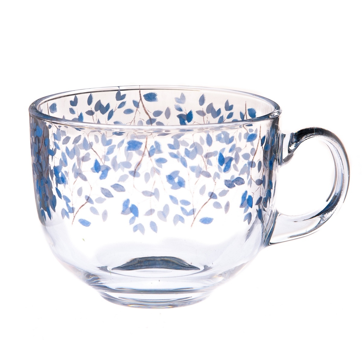 Vaše posedenie s dúškom obľúbeného nápoja, dostane atmosféru ako nikdy predtým. Sklenený pollitrový hrnček je zdobený romantickým vzorom modrých lístkov, ktorý navodí jemnosť a pohodu. Na zachovanie sýtosti farieb odporúčame ručné umývanie.