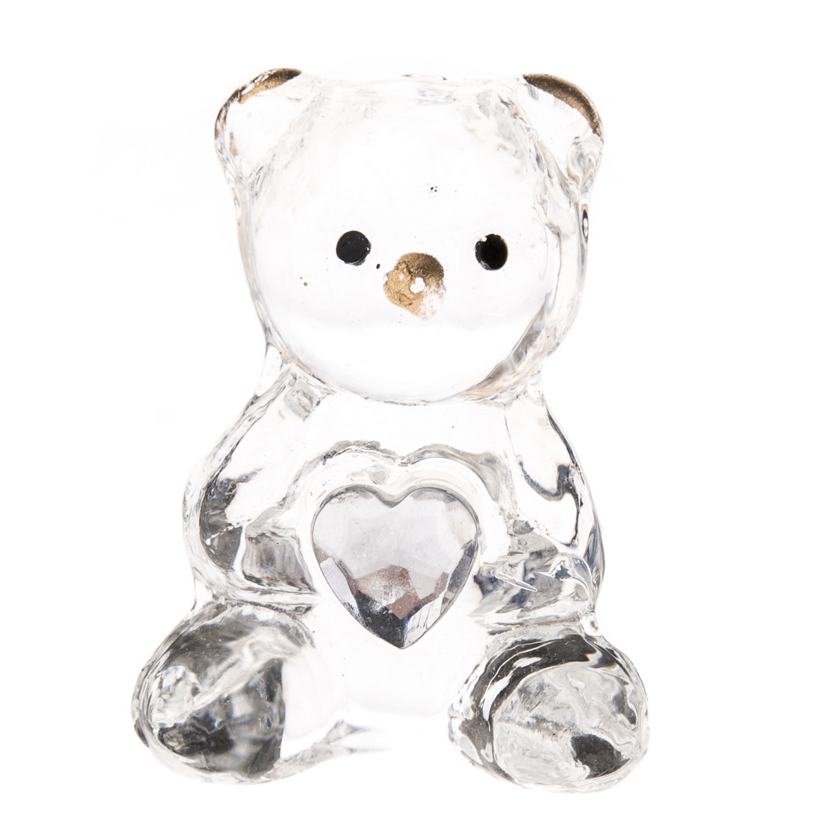 Sklenený medvedík so srdcom číra, 4 x 2 x 3 cm