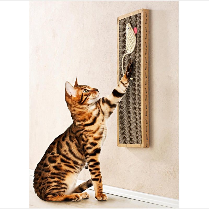 Škrabadlo pre mačky je nepostrádateľný nástroj pre správne a pravidelné obrusovanie mačacích pazúrikov. Absencia škrabadlá prináša zničenie čalúnenia, potrhané záclony alebo tapety. Aby ste tomu zabránili, kúpte svojej malej šelmičke škrabadlo s aplikáciou sisalovej myši. Malý tiger sa na ňom s radosťou vyváľa a váš čalúnený nábytok zostane neporušený. Škrabadlo je vhodné na zavesenie. Materiál: lepenka, sisal. Rozmery: 38 x 12,2 x 1,8 cm.Pomocník pre jednoduché a pravidelné obrusovanie mačacích pazúrikovDokonalá ochrana pred poškodením čalúneného nábytku, záclon alebo tapietK zaveseniuMateriál: lepenka a sisal