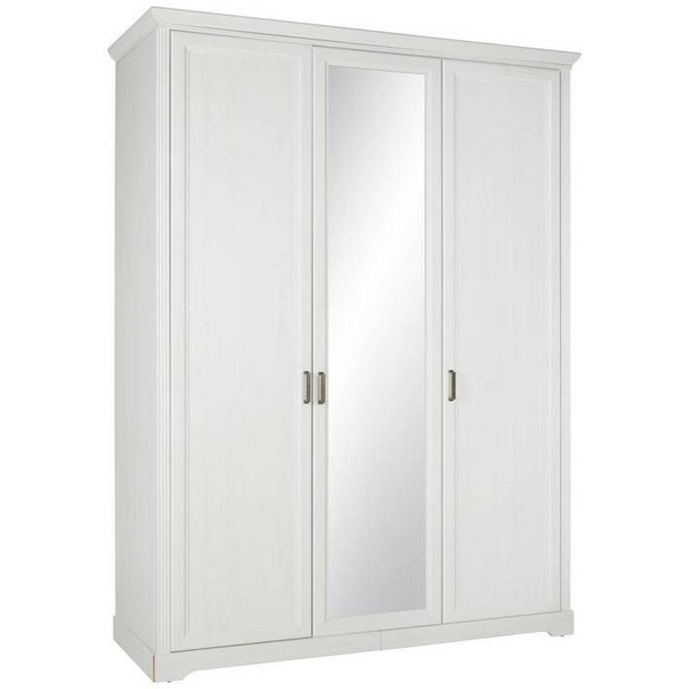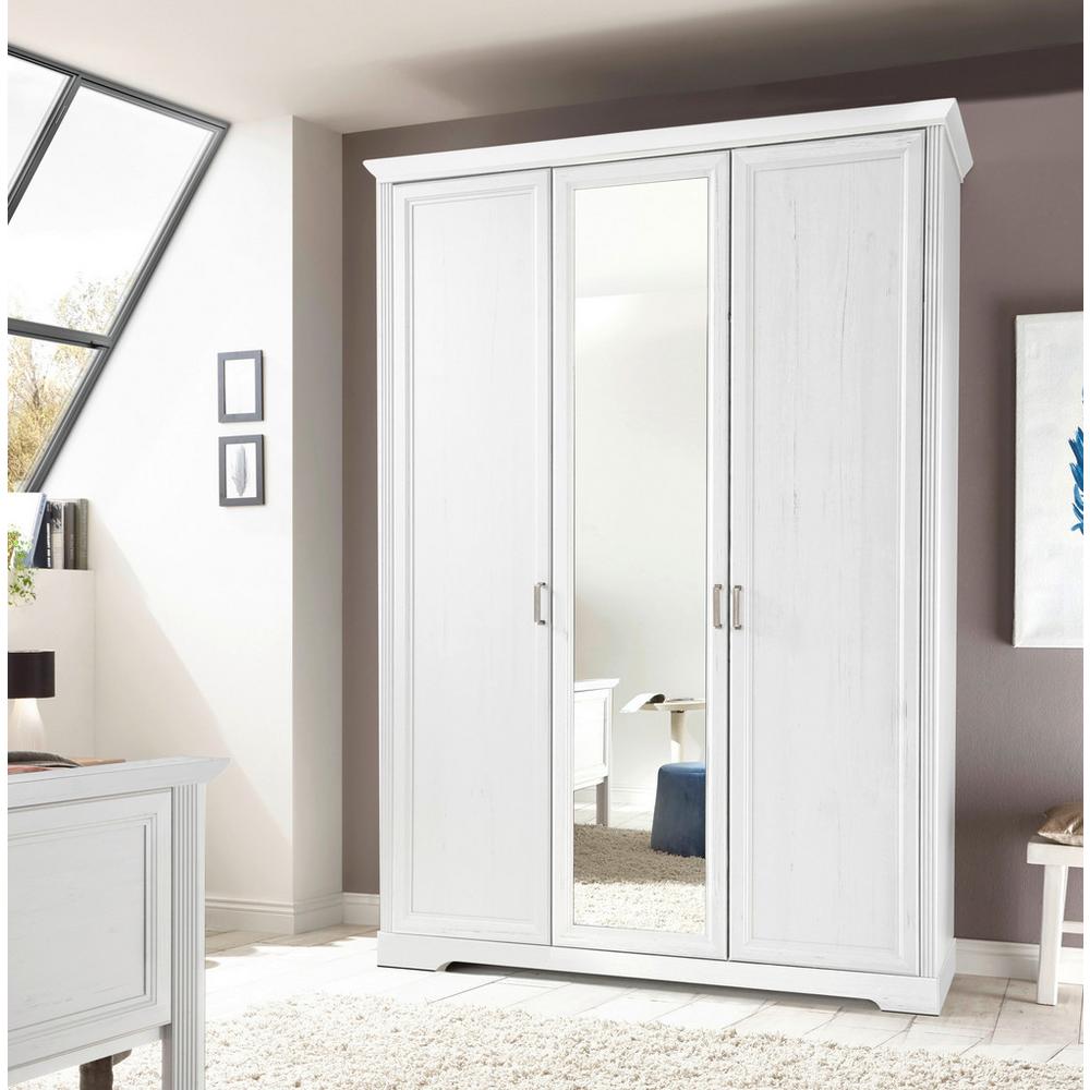 Biela skriňa s otočnými dverami MARILOU je vyhotovená s krásnym vidieckym štýlom a poteší každého majiteľa! Skriňa má rozmery približne 163,9 x 220 x 63,6 cm (Š x V x H) a bola vyhotovená z dreveného dekoru s povrchovou úpravou Anderson Pine. Ozdobné frézovanie, rímsa a úchyty vo vzhľade starého niklu vytvárajú úžasnú atmosféru, ktorú si zamilujete! Za tromi otočnými dverami sa nachádza celkom päť políc, z ktorých tri sú výškovo nastaviteľné, a vešiaková tyč. Elegantná skrinka je vybavená aj jedným zrkadlom na stredových dverách, kde si môžete rýchlo skontrolovať zvolený outfit. Praktická, a naviac veľmi atraktívna! Skriňa je dostupná v dvoch rozmeroch. Pre dokonalý dizajn v miestnosti skombinujte skriňu aj s posteľou, nočným stolíkom a komodami z rovnomennej série! Pozrite si aj naše produkty z kategórie: šatníkové skrine vešiakové