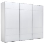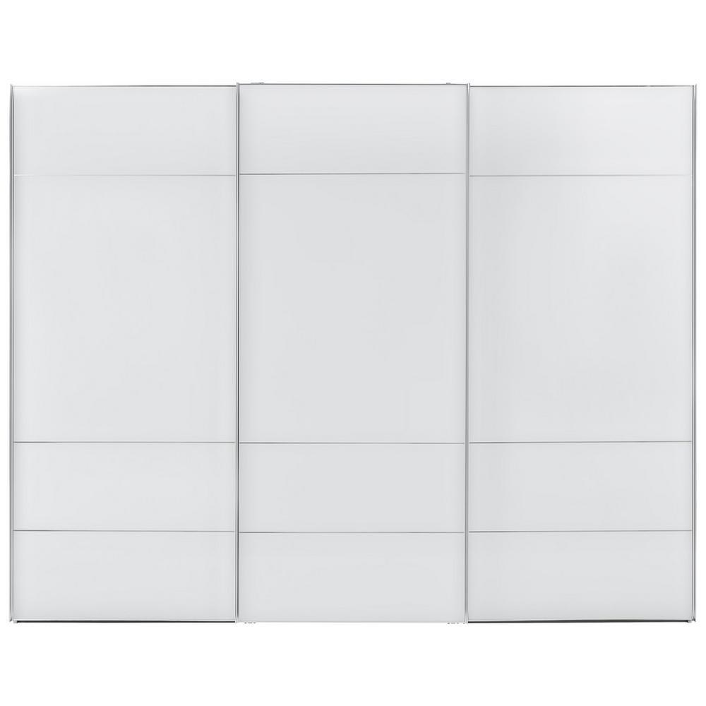 Táto skriňa s posuvnými dverami ponúka veľkorysý priestor pre šatník. Vďaka svojmu zdržanlivému vzhľadu je šatník dobre kombinovateľný s rôznymi štýlmi moderných interiérov. Šatníková skriňa s rozmermi približne 298 x 222 x 68 cm (Š/V/H) s bielym korpusom aprednou stranou v sklenenej alpskej bielej disponuje tromi posuvnými dverami. Súčasťou troch posuvných dverí sú aj nenápadné lištové úchytky vo farbe chrómu. Vnútorné vybavenie poskytuje 6 vkladacích políc a 3 šatníkové tyče. Naplánujte si skriňu snov: V našich predajniach je možné túto skriňu naplánovať do požadovaných rozmerov a dekorov podľa potrieb zákazníka. K dispozícii tiež doplnkový sortiment ako police, tlmenie dverí a iné. Poznámka: Certifikovaný nemecký výrobok.