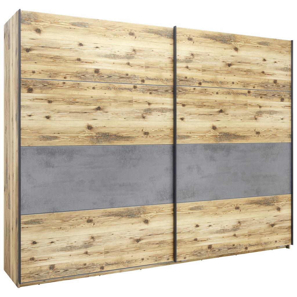Vďaka svojmu nádhernému smrekovému vzhľadu, prírodnému zrnu a sivému dekoru betón oxid je táto rustikálna skriňa s posuvnými dverami ALICANTE skutočným pútačom vo vašej spálni. Model s rozmermi približne 270 x 210 x 60 cm (Š x V x H) sa tiež vyznačuje veľkorysým úložným priestorom. Za dvomi posuvnými dverami, ktoré sa dajú otvoriť pomocou lištových úchytov, sa nachádzajú tri tyče na šaty, na ktoré zavesíte vaše kostýmy, saká, blúzky a košele. Svetre, nohavice a tričká – ako aj úložné boxy nájdu svoje miesto na troch policiach, z ktorých každá má nosnosť až 5 kg. Na dno tejto skrine môžete umiestniť aj topánky a ďalšie boxy. Ak chcete, môžete skriňu doplniť vhodným príslušenstvom, ktoré nájdete v našej ponuke. V kombinácii s ostatným nábytkom zo série ALICANTE si môžete vo svojej spálni vytvoriť príjemne harmonický celkový obraz. Najdôležitejšie informácie: