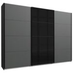 Tento tovar je k dispozícii IBA ONLINE.Funkčný pútač očí v elegantných čiernych a grafitových farbách: šatníková skriňa s posuvnými dverami je štýlová a má prepracovaný úložný priestor.Priestranný spálňový nábytok má rozmery cca 270 x 210 …