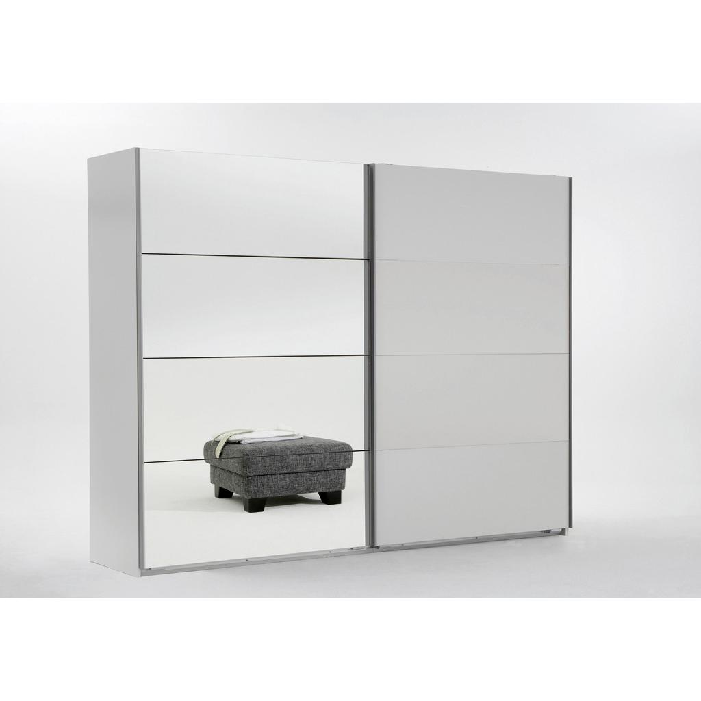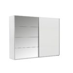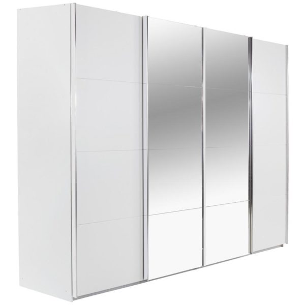 Šatníková skriňa, s ideálnymi rozmermi 225 x 210 x 64 cm (Š/V/H) a v modernom prevedení alpskej bielej farby, sa hodí ku každému štýlu bývania. Jej priame línie zaujmú najmä vyznávačov minimalizmu. Skriňa má 2 posuvné dvere, jedny s veľkým zrkadlom, zloženým zo štyroch kaziet. Vo vnútri sa ukrýva priestor s dvomi šatníkovými tyčami a dvomi výškovo nastaviteľnými policami.