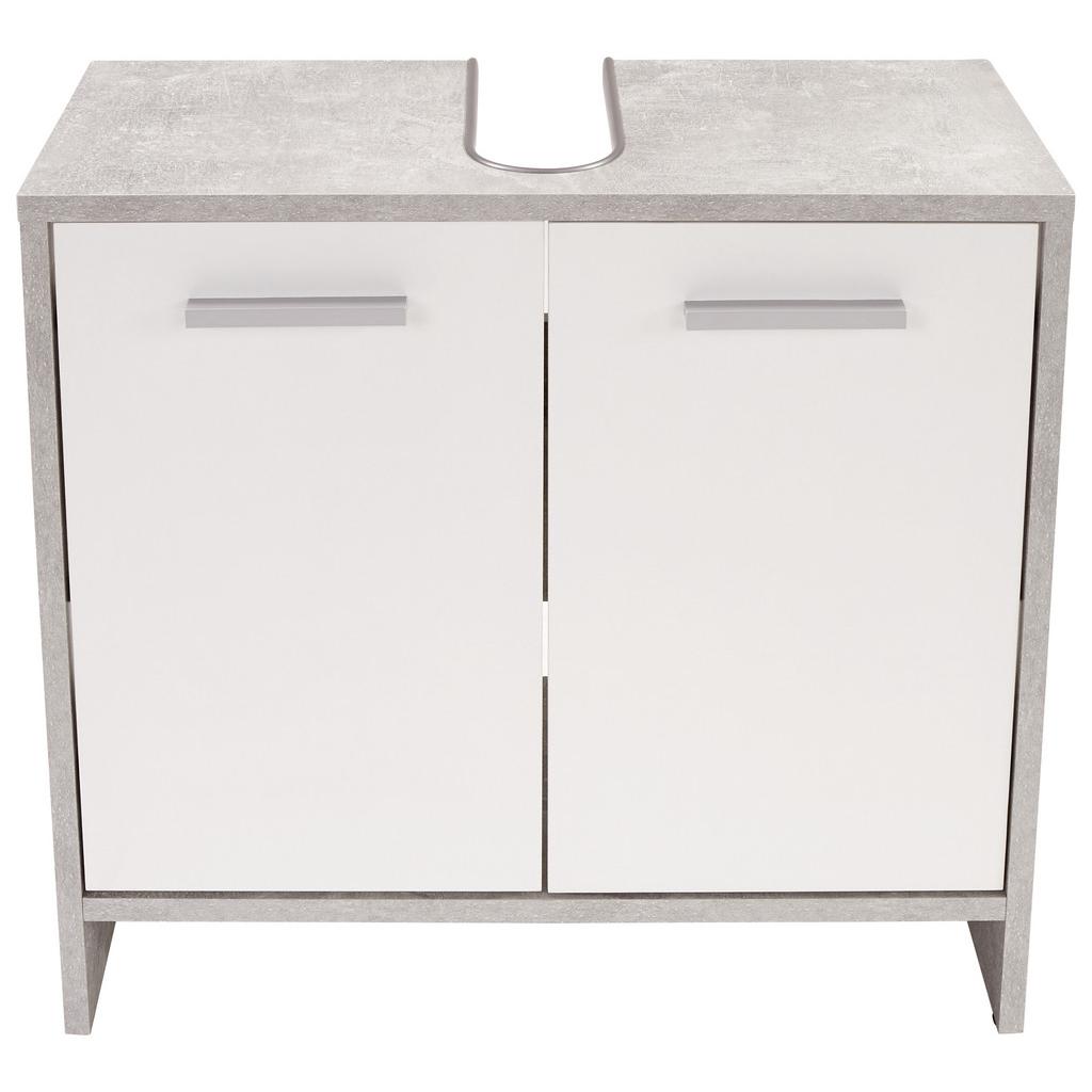 Moderná skrinka pod umývadlo v dekore beton/perlovo biela, s melamínovým povrchom odolným voči poškriabaniu, s 2 dverami, s úchytmi farby chrómu. Š/V/H:cca 60/55/28 cm