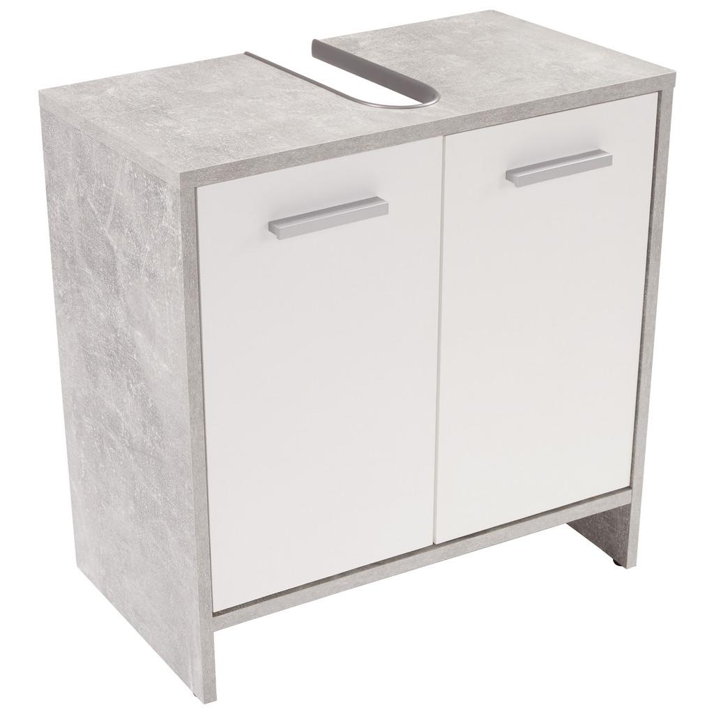 Moderná skrinka pod umývadlo v dekore beton/perlovo biela, s melamínovým povrchom odolným voči poškriabaniu, s 2 dverami, s úchytmi farby chrómu. Š/V/H:cca 60/55/28 …