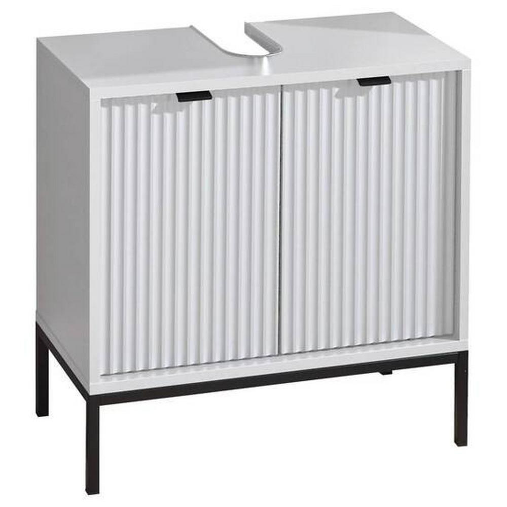 Táto toaletná skrinka MID.YOU v bielej farbe vnesie do vašej kúpeľne pokoj a poriadok. Nábytok s rozmermi cca 60 x 60 x 32 cm (š x v x h) má dostatok priestoru vďaka kovovým nožičkám vo výške cca 15 cm v abielaj farbe. Vďaka tomu sa pod nábytkom napríklad ľahko čistí.Matná biela farba a žalúziový vzor na 2 otočných dvierkach, ktoré tvoria prednú časť, pôsobia čisto a neprehliadnuteľne. Skvelý spôsob, ako uložiť uteráky, čistiace prostriedky, tuby, fľaše, krémy alebo toaletný papier.Za dvierkami, ktoré sa otvárajú pomocou úchytky na hrane, sa nachádzajú 2 priehradky, ktorých veľkosť možno variabilne nastaviť pomocou poličky. Jedno je isté: táto toaletná skrinka v bielej farbe nielenže upratuje vaše domáce kúpele, ale aj zabezpečuje prehľadné usporiadanie miestnosti!