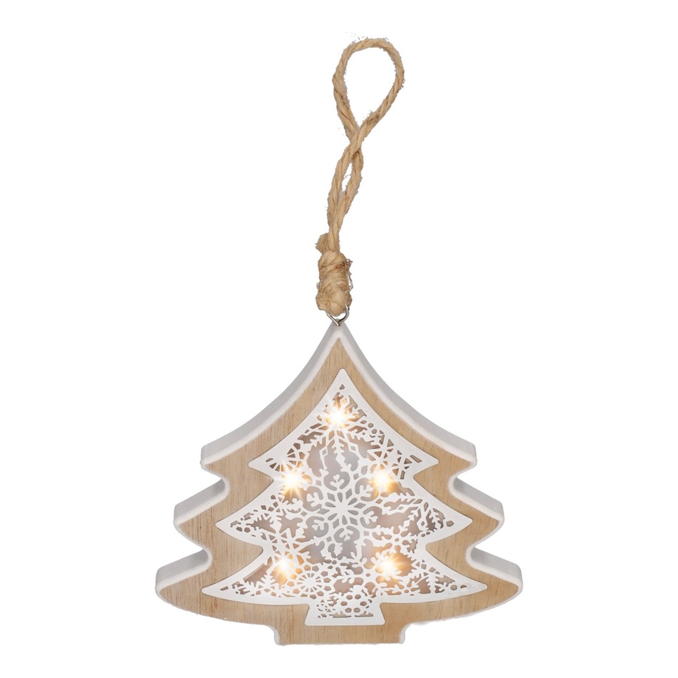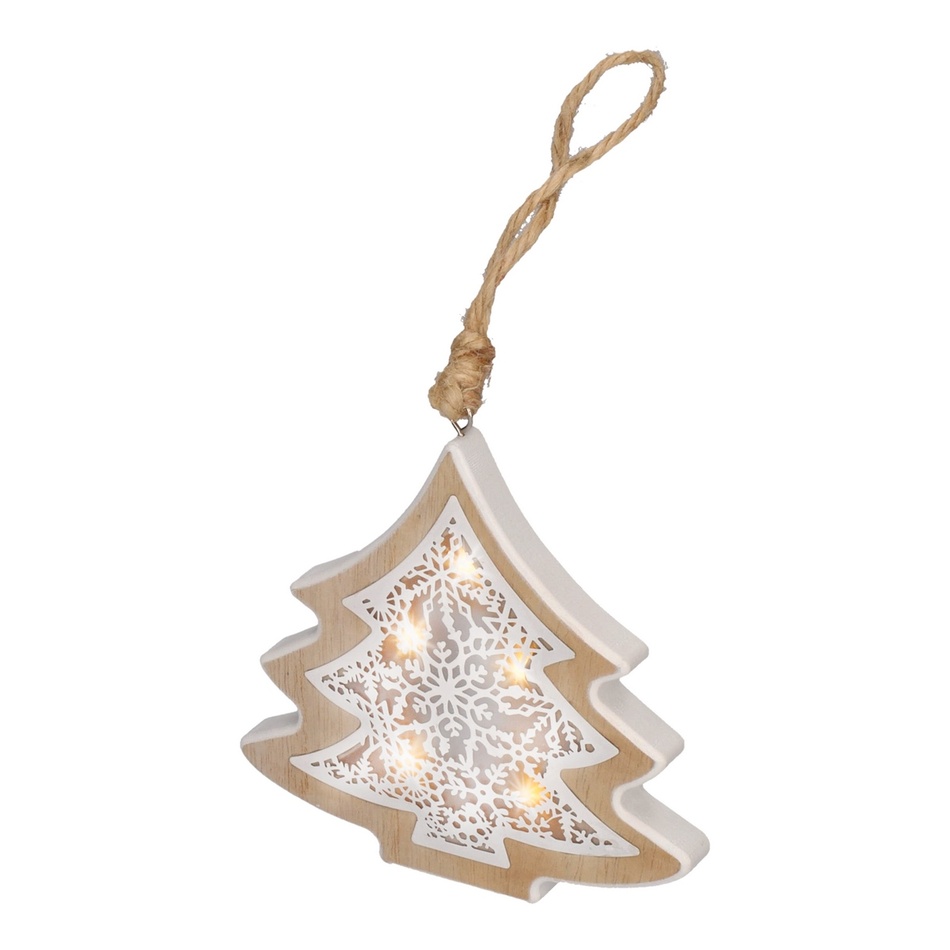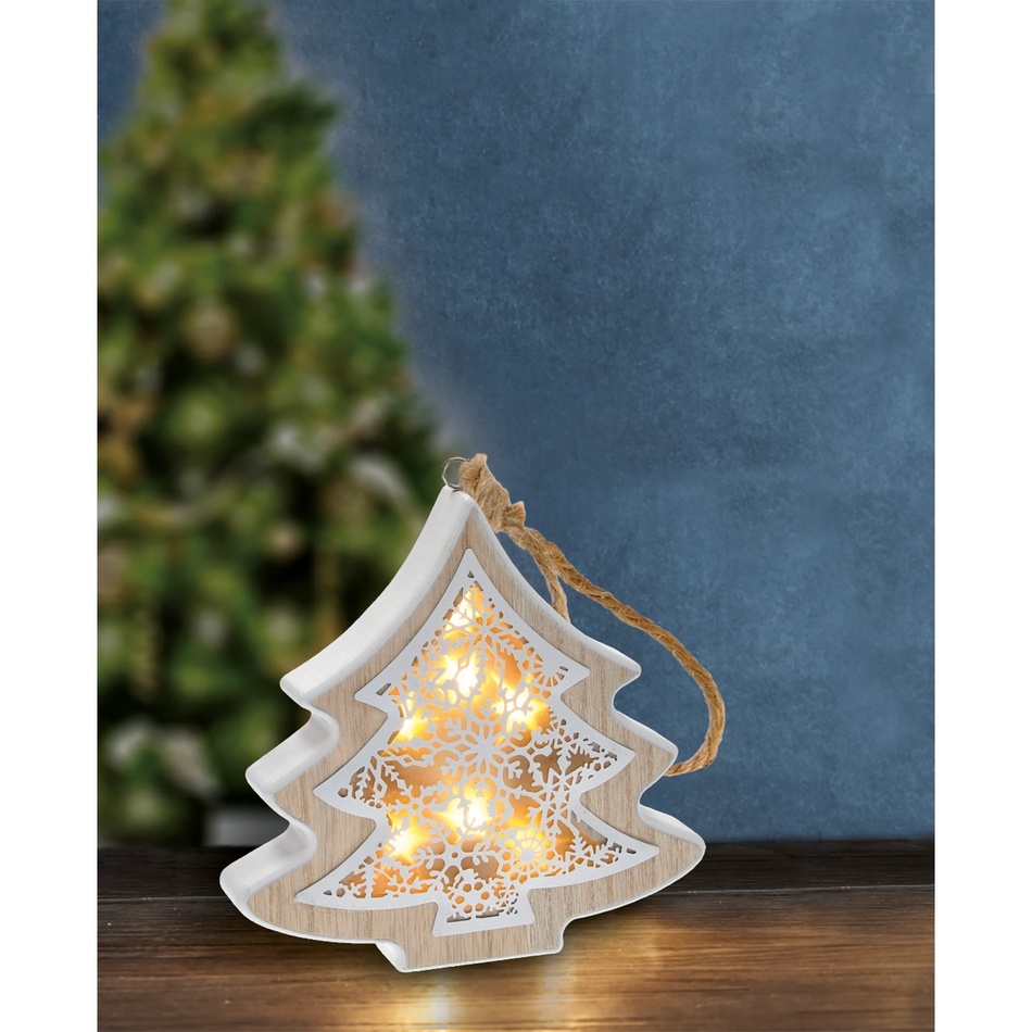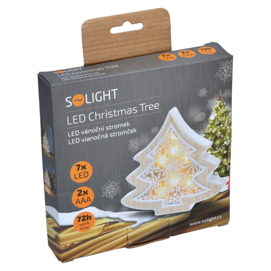 Solight 1V45-T LED vánoční stromek, dřevěný dekor, 6LED, teplá bílá, 2x AAA