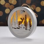 Pekná svietiaca dekorácia s vyobrazením zimnej zasneženej krajiny vás bude tešiť počas dlhých zimných večerov.