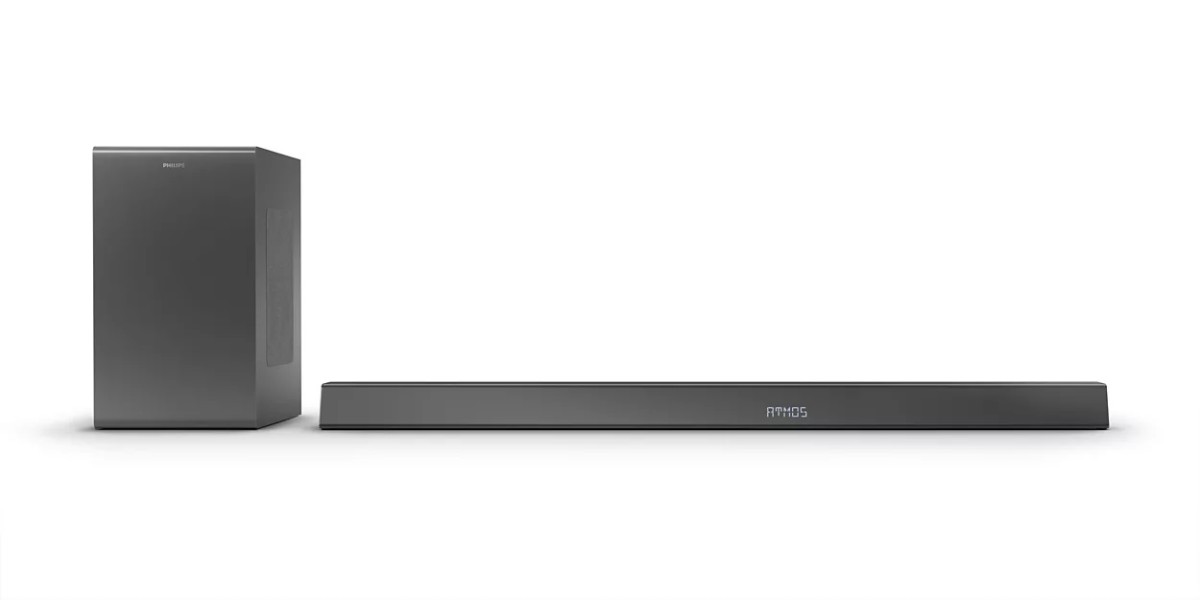Soundbar PHILIPS dokáže televízny zvuk posunúť na vyššiu úroveň. Vychutnajte si zvuk, ako ho poznáte z kín. Zvukové efekty, ktoré poznáte z kín, si môžete užívať tiež v pohodlí domova. Aktívny reproduktor soundbar PHILIPS v elegantnom dizajne ponúka zvukové vlastnosti 3.1.2 kanálovej zostavy. Panel ponúka celkový výkon 360 W. Medzi jeho najlepšie vlastnosti patrí priestorový zvuk s podporou formátu Dolby Atmos, Dolby TrueHD, Dolby Digital Plus a Dolby Digital. Ľahké prepojenie zdrojom zvuku prebieha cez HDMI, 3,5 mm jack, digitálne optické a AUX pripojenia. Rýchle a jednoduché pripojenie k ďalším elektronickým zariadeniam sprostredkuje WiFi a Bluetooth. Subwoofer pripojíte jednoducho bezdrôtovo. Soundbar Philips je ideálnym doplnkom k multiroom systémom, ktoré prehrávajú hudbu po celom dome. Podpora ARC zaručí jednoduché prepojenie s televíziou jedným HDMI káblom. Uspokojí náročných poslucháčov a divákov a preto je vybavený funkciou 4K Video Pass pre jednoduché prehrávanie filmov vo vysokom rozlíšení. Jednoducho ho pripojíte aj k streamovacím službám Spotify, Apple Music a Google Play Music. Ovládanie je pohodlné vďaka diaľkovému ovládaču, ktorý je súčasťou. Rozmery: hlavná jednotka (š x v x h) 112 x 6,4 x 11,3 cm, hmotnosť 3,8 kg; subwoofer (š x v h) 23 x 40,3 x 40 cm, hmotnosť 7,6 kg. Dodávané príslušenstvo: diaľkový ovládač, 1 x batéria CR2025, napájací kábel, držiak pre montáž na stenu. Vyrobila spoločnosť PHILIPS.Nadčasový geometrický dizajnMožnosť montáže na stenuZvuk do viacerých miestnostíPriestorový zvuk s technológiou HDMI HarcPrenos v rozlíšení 4K, dva vstupy HDMIOptický vstup pre Spotify Connect, Bluetooth, Apple AirPlay 2Jednoduché pripojenie k obľúbeným zdrojomPripojenie s funkciou hlasového asistentaPrehrávanie zariadenie USBOvládanie výšok a basov, synchronizácia zvuku, ovládanie hlasitosti subwooferaNastavenia ekvalizéra: Film, Hudba, Šport, Hlas, VlastnéVýstupný výkon reproduktorové sústavy max. 600 W / 360 W RMS (10% THD)Prenos videa v rozlíšení 4K, Dolby Vision, HDR10, HDR10 +, HLG Zvuk pre obľúbený obsah:3.1.2 kanály, 360 W RMS max. 600 W (10% THD)Vyhradený stredový kanál pre krištáľovo čisté dialógynapínavejšie zážitok – Dolby Atmos reproduktory:Počet zvukových kanálov 3.1.21 x širokopásmový reproduktor1 x výškový reproduktorPredné reproduktory: 2 x širokopásmové reproduktory, 2 x výškové reproduktory (L + P)Reproduktory smerujúce nahor: 2 x širokopásmové reproduktory (L + P)Frekvenčné pásmo reproduktora 160 – 20.000 HzOdpor reproduktora 8 ohm x 2 + 4 ohmAktívny, bezdrôtový subwooferMeniče 1 x 8 „basový reproduktorFrekvenčný rozsah subwoofera 40 – 160 HzOdpor subwoofera 3 ohm Možnosti pripojenia:Vstup HDMI 2 xVýstup HDMI (Harc / ARC)EasyLink (HDMI-CEC)Ochrana obsahu HDMI: HDCP 1.4 / 2.3Bluetooth 4.2Optický vstupAux in 3,5 mmWi-Fi 802.11 a / b / g / nDTS Play-Fi do viacerých miestnostíAplikácia Ok GoogleAplikácia AlexaApple Airplay 2Integrovaná funkcia ChromecastSpotify Connect Podporované audio formáty: