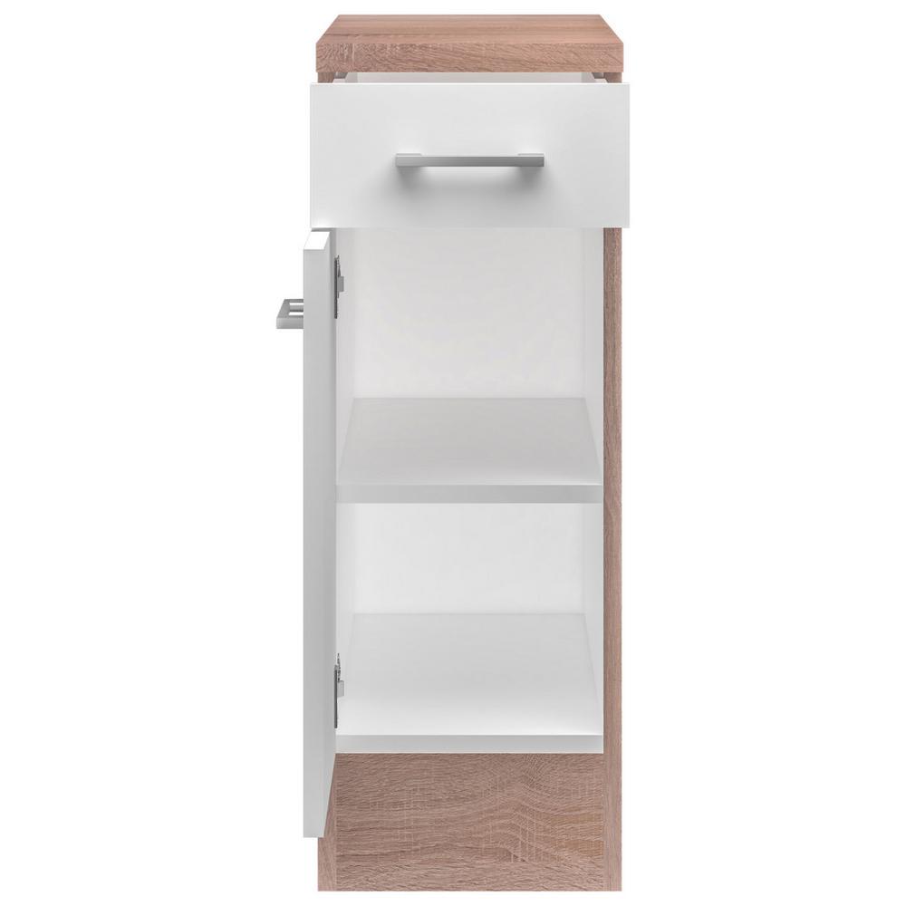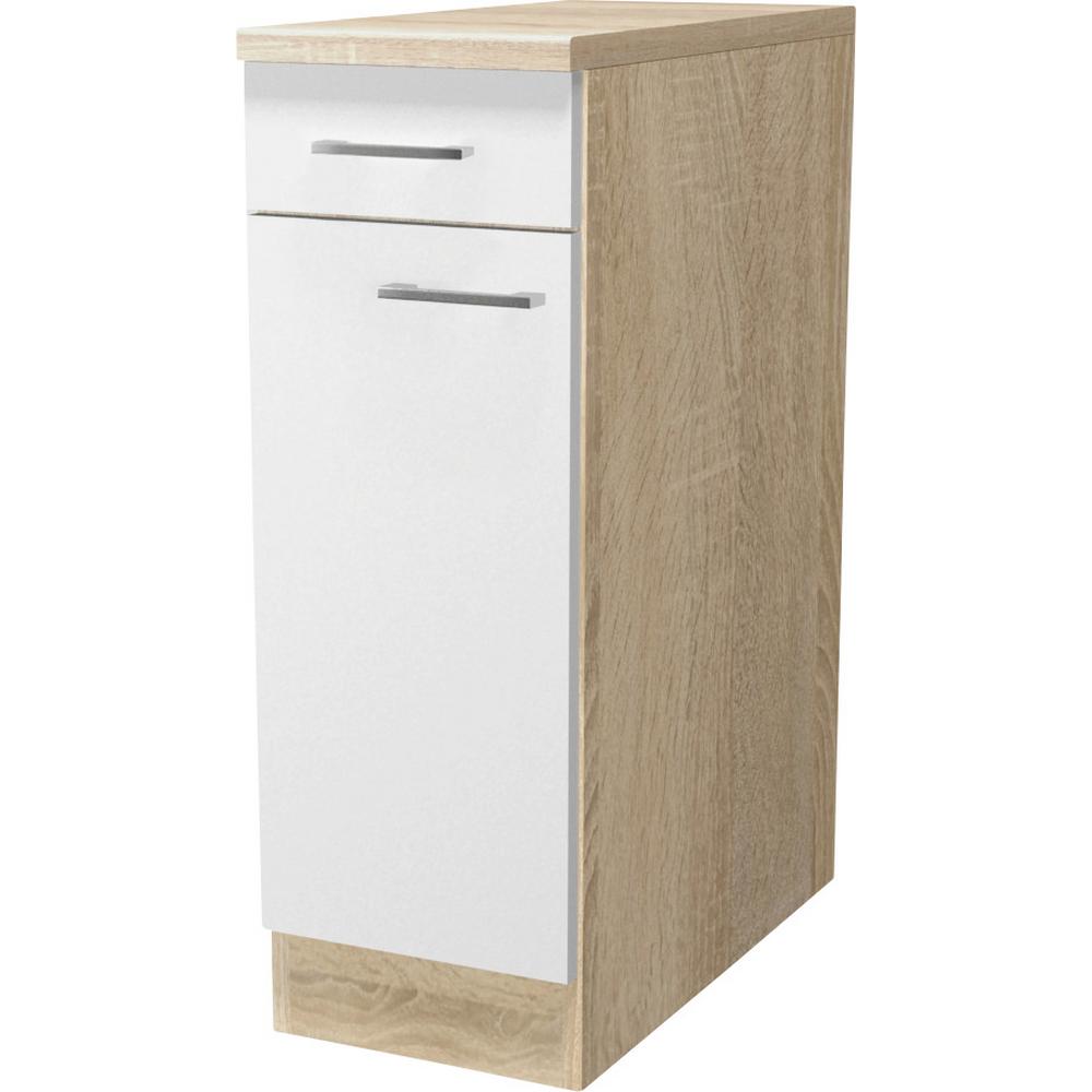 Spodná kuchynská skrinka v dekore dub Sonoma v kombinácii s bielou, s melamínovým povrchom, s 1 dvermi, 1 zásuvkou, 1 vkladacou policou.Š/V/H: cca 30/85/57 cm