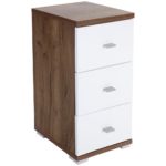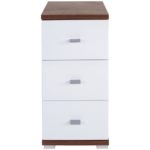 Spodná skrinka s korpusom v dekore dub Kraft tmavý, čelo MDF biele lakované, s 3 zásuvkami, úchytky hliníkovej farby. Š/V/H: cca 35/72/31,5 …