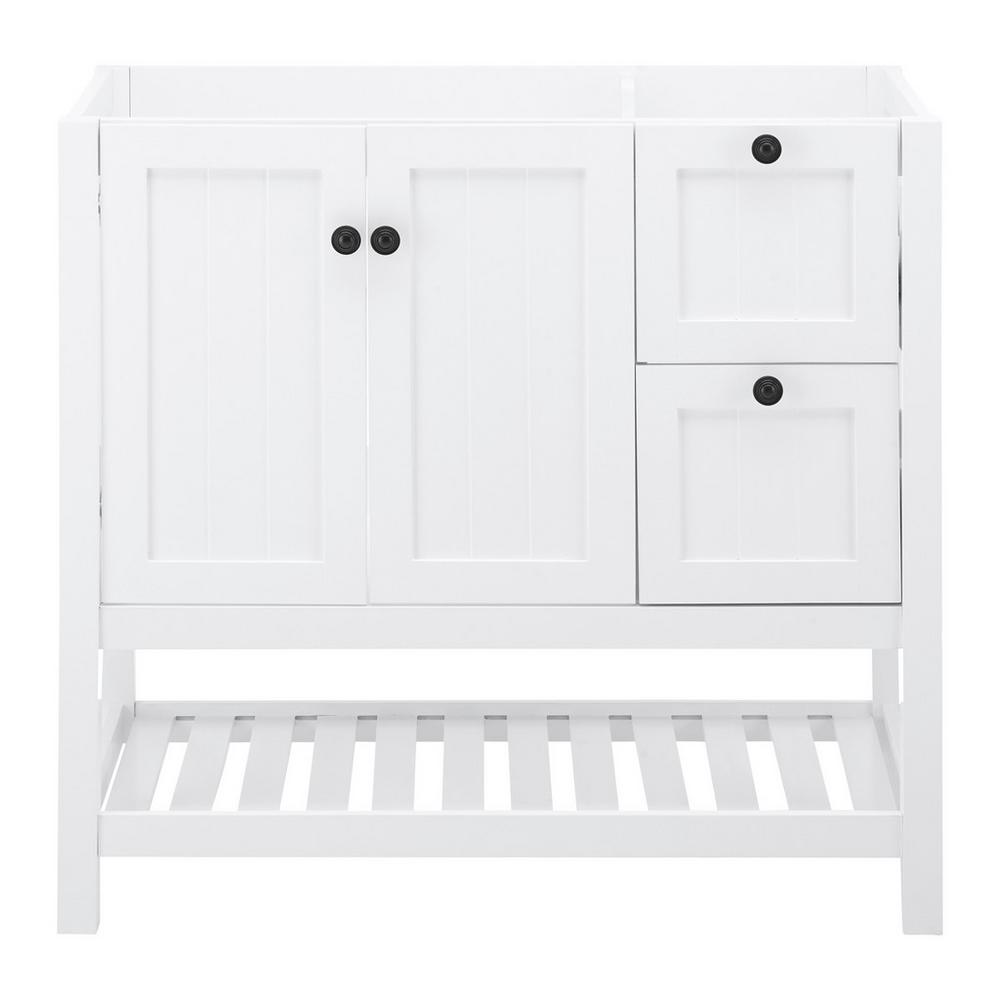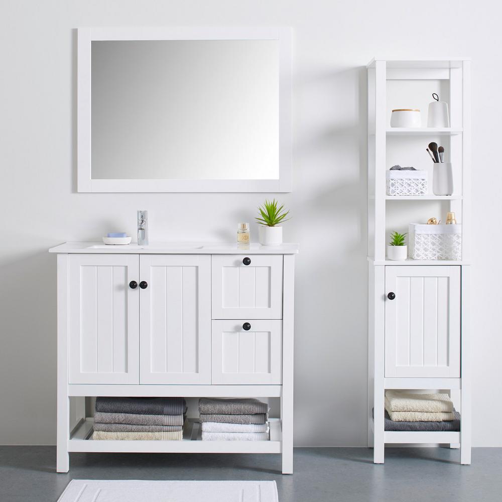 Tento výrobok je k dispozícii iba ONLINE. Kúpeľňová spodná skrinka ERICA bielej farby vytvorí vo vašej kúpeľni harmonické prostredie. Vďaka sviežemu vzhľadu s nádychom vidieckeho štýlu je táto skrinka skutočným pútačom vášho domova. Vyrobená je z MDF z borovicového dreva. Gombíkové úchytky, ktoré sú vyrobené z kovu čiernej farby, diskrétne zapadajú do celkového obrazu. Skrinka ponúka aj praktický úložný priestor. Má 2 zásuvky s komfortným výsuvom, 1 otvorenú priehradku a 2 otočné dvere, za ktorými sa nachádza 1 polica. Nájdete tu dostatok miesta na uloženie uterákov, kozmetiky a kúpeľňových doplnkov.