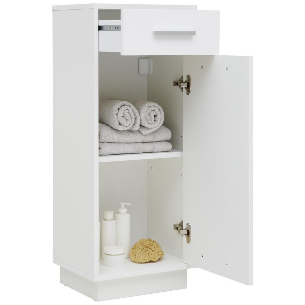 Kúpeľňová séria MILANO zaujme príjemnou kombináciou farieb a povrchov. Kým telo a predné diely sú vo vysokom lesku, biele priehradky v dekore dub Artisan vytvárajú elegantný kontrast. Svieži, moderný dizajn dokonale dotvárajú chrómové držadlá.Spodná skrinka s rozmermi cca 38 x 92 x 30 cm (Š x V x H) ponúka dostatok priestoru na upratovacie potreby, ošetrujúce predmety alebo sušič vlasov v dvoch oddeleniach za otočnými dverami s tlmením dverí. Hore je zásuvka so systémom soft-close, do ktorej môžete uložiť napríklad kozmetiku.Zostavte si kúpeľňu podľa svojich predstáv so spodnou skrinkou a ďalším nábytkom z tejto série!