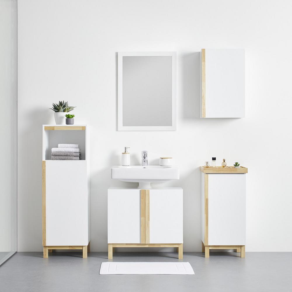 Tento artikel je k dispozícii IBA ONLINE. Spodná skriňa v bielej farbe s úchytkami z kaučukového dreva v prírodnej farbe. Disponuje 1 dverami a 1 nenastaviteľnou poličkou, ktorá má nosnosť 5kg. Doplňte si zo série RICO dalšie skrinky a vytvorte si tak príjemnú, svetlú kúpeľňu v jednotnej farbe. Upozornenie: Tento artikel nie je vystavený v našich predajniach.