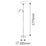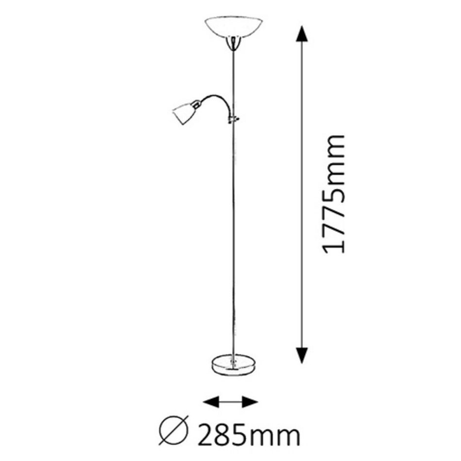 Stojaca lampa maďarskej značky Rabalux v krásnom elegantnom štýle je vhodná ako doplnkové osvetlenie v klasickom aj modernom interiéri. Povrchová úprava je v prevedení matný (saténový) chróm. Tienidlá sú v prevedení z plastu (veľké tienidlo) a opálového skla (malé tienidlo), ktoré skvele rozptyľujú svetlo. Každá lampička má svoj vlastný vypínač umiestnený na prívodnom kábli, teda je využijete naozaj len vtedy, kedy ju budete potrebovať. Prednosťou svietidla je kvalita prevedenia a dizajnové riešenie, ktoré možno využiť na osvetlenie obývacích izieb, pracovní, chodieb a pod.Moderná stojaca lampa Diana využíva dva typy žiaroviek. U dolnej lampičky je jej výhodou možnosť nastavenia smeru svietivosti pomocou ohybného ramena. Odporúčané žiarovky sú 1x 60 W s päticou E27 (G45) a 1x 40 W s päticou E14. Možno ich nahradiť úspornými alebo LED žiarovkami.
