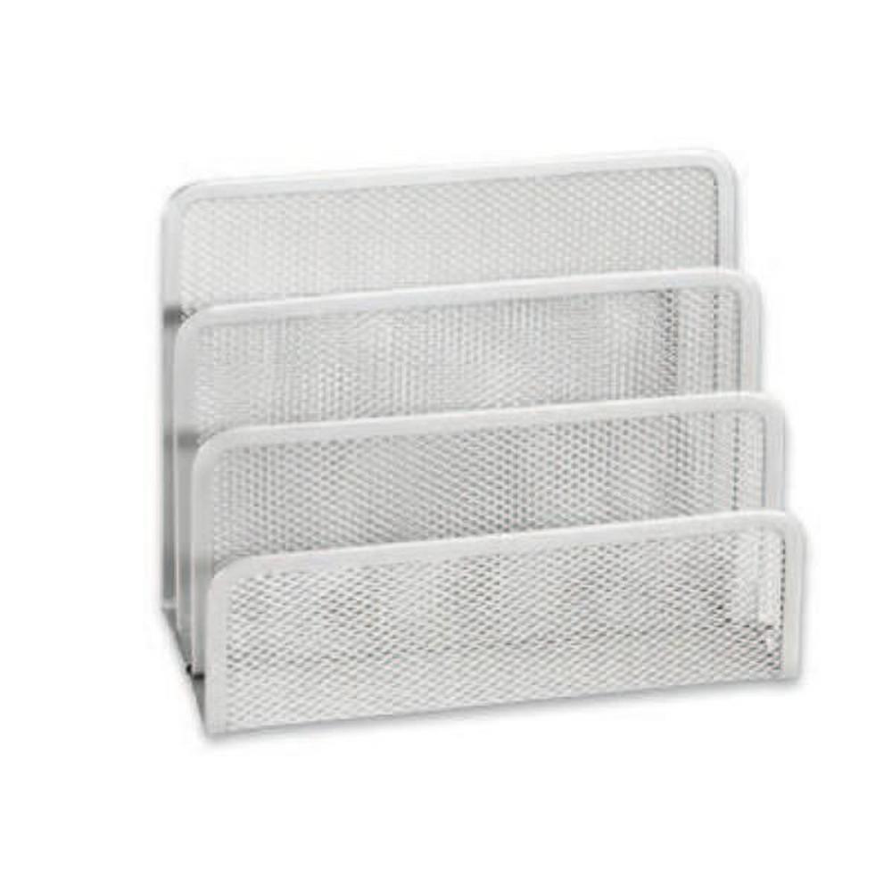 Dekoratívny organizér z kovu s 3 priehradkami, vďaka ktorému budete mať na písacom stole dokonalý poriadok. Organizér s rozmermi 17,5 x 8,2 x 13,5 cm (š/v/h) pozostáva z priehradok v klasickom formáte A4 ideálne na odkladanie dokumentov, časopisov, zakladačov a pod. Skrášlite si svoje pracovisko so stabilným organizérom zo série MESH!