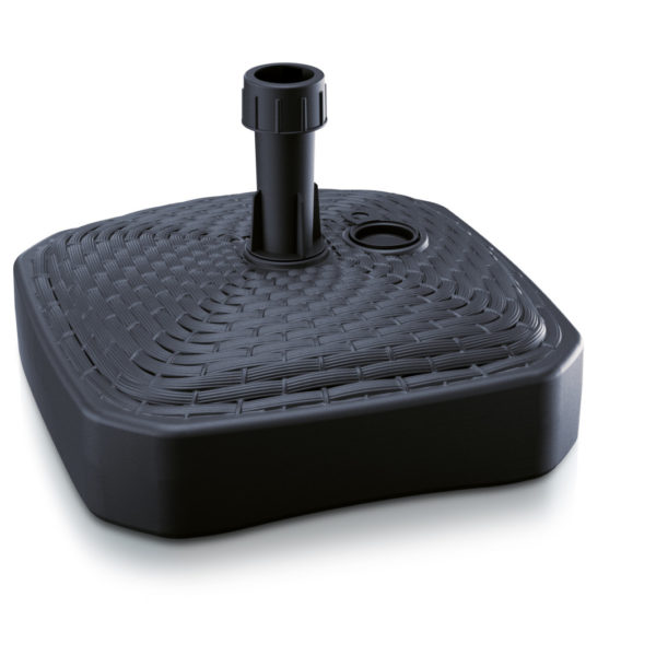 Hranatý stojan na slnečník v dekoratívnom ratanovom vzhľade zaistí pevnú oporu samotnému slnečníku. Stačí ho jednoducho naplniť pieskom alebo vodou. Robustná plastová hmota je odolná voči poveternostným vplyvom a tým zaručuje dlhú životnosť. Stojan je kompatibilný s väčšinou bežne dostupných slnečníkov. Rozmery: 39 x 39 cm, výška 13 cm.Pevný a stabilnýHranatý tvarK naplneniu pieskom alebo vodouOdolný plast s dlhou životnosťouDostupný v dvoch farbách