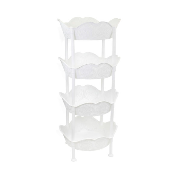 Poschodový stojan so 4 zdobenými košíkmi dokáže vaše veci udržať v prehľadnom poriadku. Využijete ho v každej miestnosti vášho domova. Najpraktickejší spôsob, ako uložiť kozmetiku, čistiace prostriedky, ale aj množstvo ďalších vecí z domácnosti. Stojan s košíkmiK praktickému uloženiu kozmetiky, čistiacich prostriedkov a i.4 zdobené košíkyNa využitie v celej domácnosti Materiál: plast. Rozmery: 39,5 x 39,5 x 83 cm.
