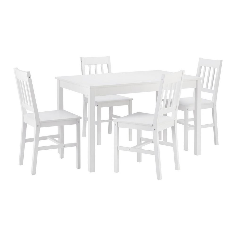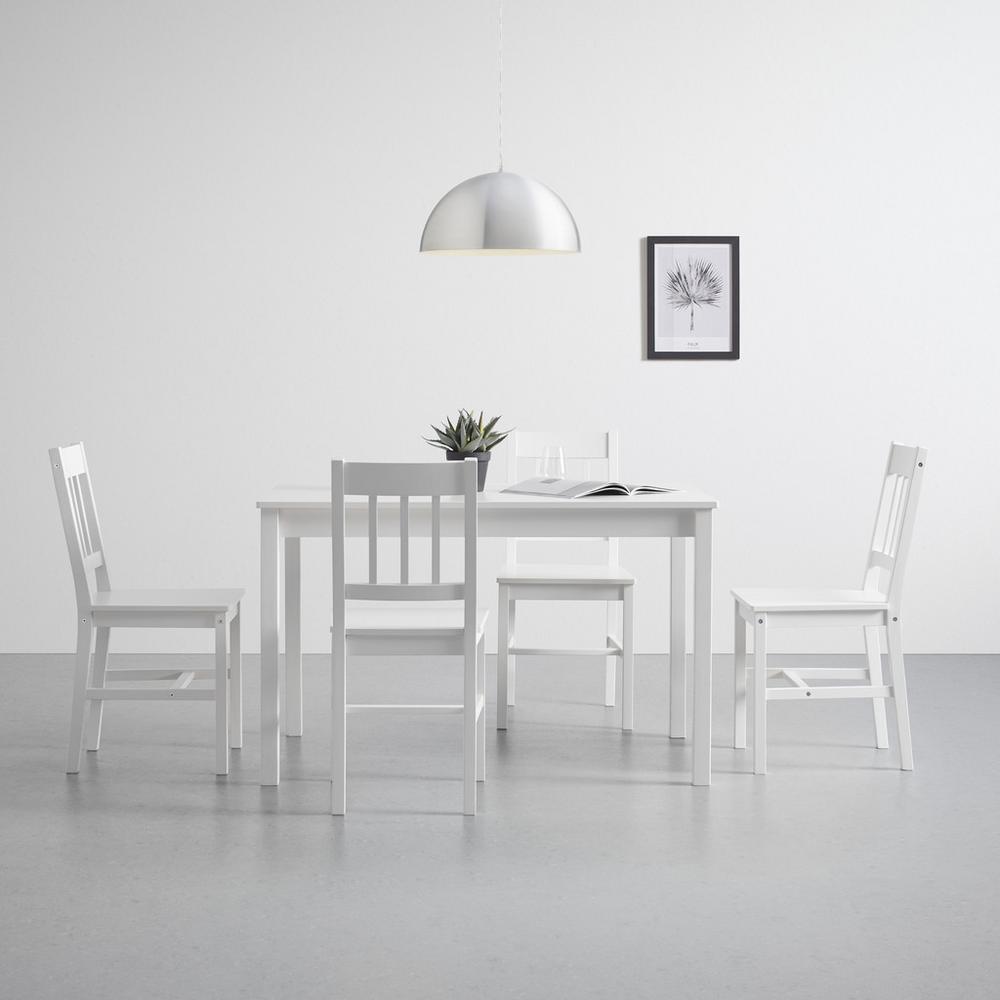Tento tovar je k dispozícií IBA ONLINE! Stolová súprava v romantickom štýle vyrobená z MDF a borovicového dreva sa skladá z 1 stola a 4 stoličiek.