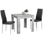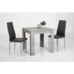 3-dielna zostava do jedálne, skladá sa z: 1x stôl v dekore beton a 2 stoličky s poťahom v sivej textilnej koži, s kovovými nohami hliníkovej farby, s nosnosťou 100 kg,výška sedu: 47 cm, stôl: 80/74/80, stolička: 42/98/44 …