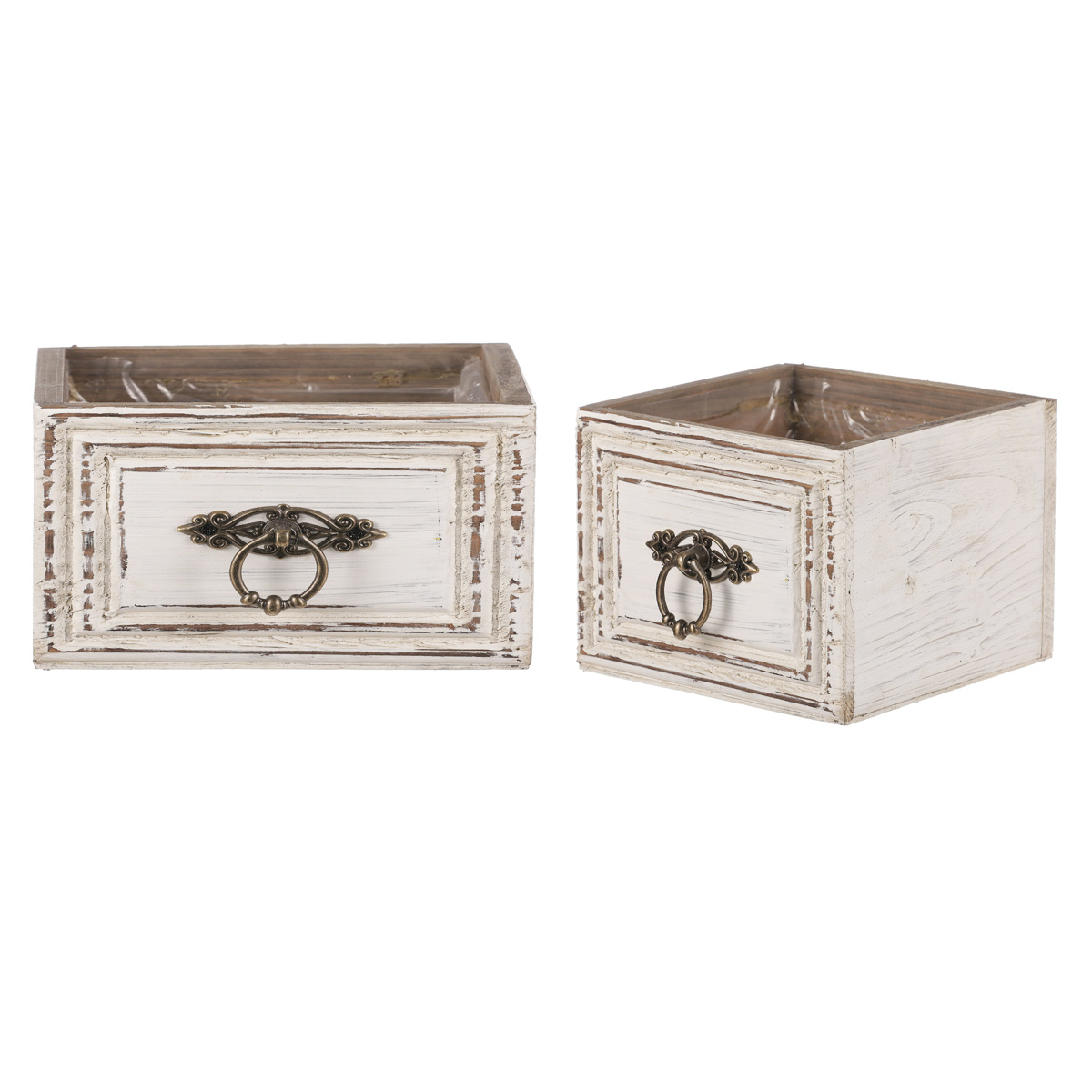 Súprava 2 ks obalov na kvety Šuplík štvorec, biela patina, 2 veľkosti