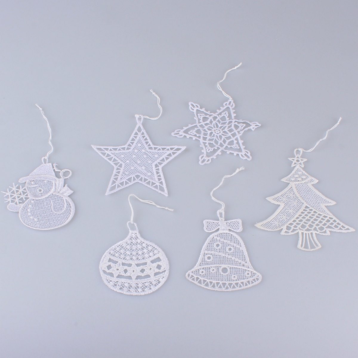 Súprava háčkovaných závesných ozdôb 6 ks, biela