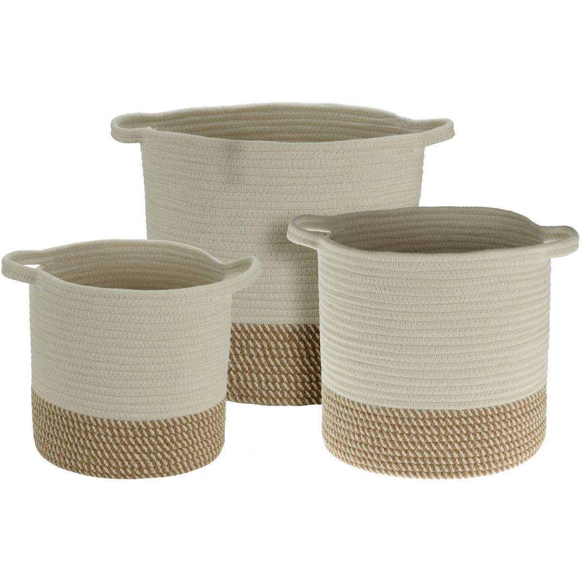 Táto sada krásnych pletených košov sa bude hodiť do každej domácnosti. Môžete do nich uložiť deky, uteráky v kúpeľni, noviny alebo ich použiť ako obaly na kvetináče.Veľkosť malého koša: 24 x 24 cmVeľkosť stredného koša: 28 x 28 cmVeľkosť veľkého koša: 32 x 32 cm