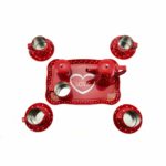 Každú malú kuchárku poteší táto krásna sada bodkovaného riadu, ktorý doplní jej kuchynku. Nájdete v nej čajovú kanvicu, šálky, podšálky a tácku.
