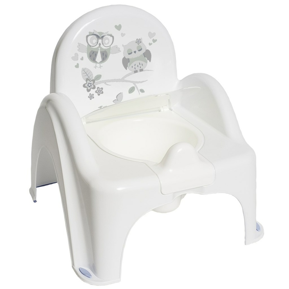 Kúpte svojim deťom tento skvelý nočník s obrázkom sovičiek, ktorý je nenahraditeľnou pomôckou v období prechodu z plienok na toaletu. Po vykonaní potreby hrá melódiu. Poskytuje deťom pohodlie, vďaka vysokej opierke chrbta a širokému sedátku. Má vyberateľnú vnútornú časť a sklápací poklop, ktorý zabráni úniku zápachu. Tvarom pripomína toaletnú misu.