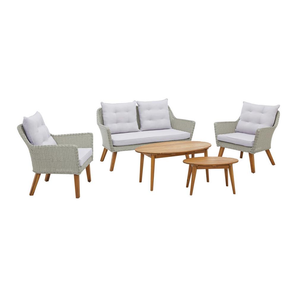 Táto dvanásťdielna záhradná sedacia súprava ponúka útulné miesto na oddych vonku. Vyrobená je s elegantnou plastovou sieťovinou sivej farby. Nohy sedacieho nábytku ako aj dva oválne stolíky sú z pravého akáciového dreva v prírodnej farbe. …