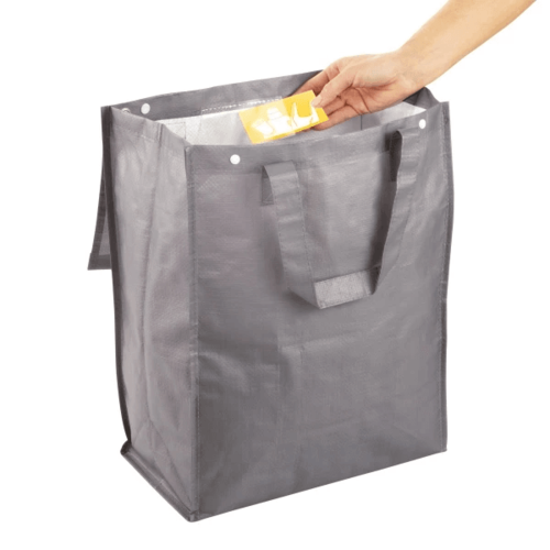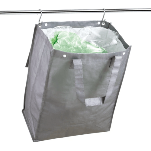 Na prehľadné triedenie domáceho odpadu. Priestranná taška CLEAN KIT s objemom 26 l je vynikajúca na triedenie domáceho odpadu.Vďaka použitej odolnej syntetickej textílii je taška vhodná pre všetky bežné druhy domáceho nebiologického odpadu. Okrem papiera a plastov teda aj pre sklenený alebo kovový odpad.Taška s patentnými uzávermi veka má pevné úchyty pre pohodlné vynášanie a je opatrená transparentným vreckom pre rozlišovací štítok (4 štítky sú súčasťou výrobku).Tašku môžete zavesiť oceľovými očkami na háčiky a zavesiť ju na zvislú plochu pre úsporu miesta.Dve alebo viac tašiek na triedený odpad CLEAN KIT môžete tiež ľahko vzájomne spojiť a vytvoriť tak ucelenú zostavu na prehľadné triedenie rôznych druhov domáceho odpadu.Čistenie: čistite vlhkou utierkou a osušte, nedávajte do práčky ani sušičky.